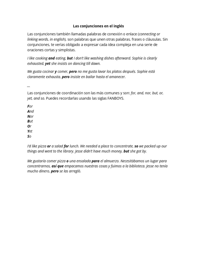 Conjunciones. Se usan conjunciones... - Aprendamos Inglés | Facebook