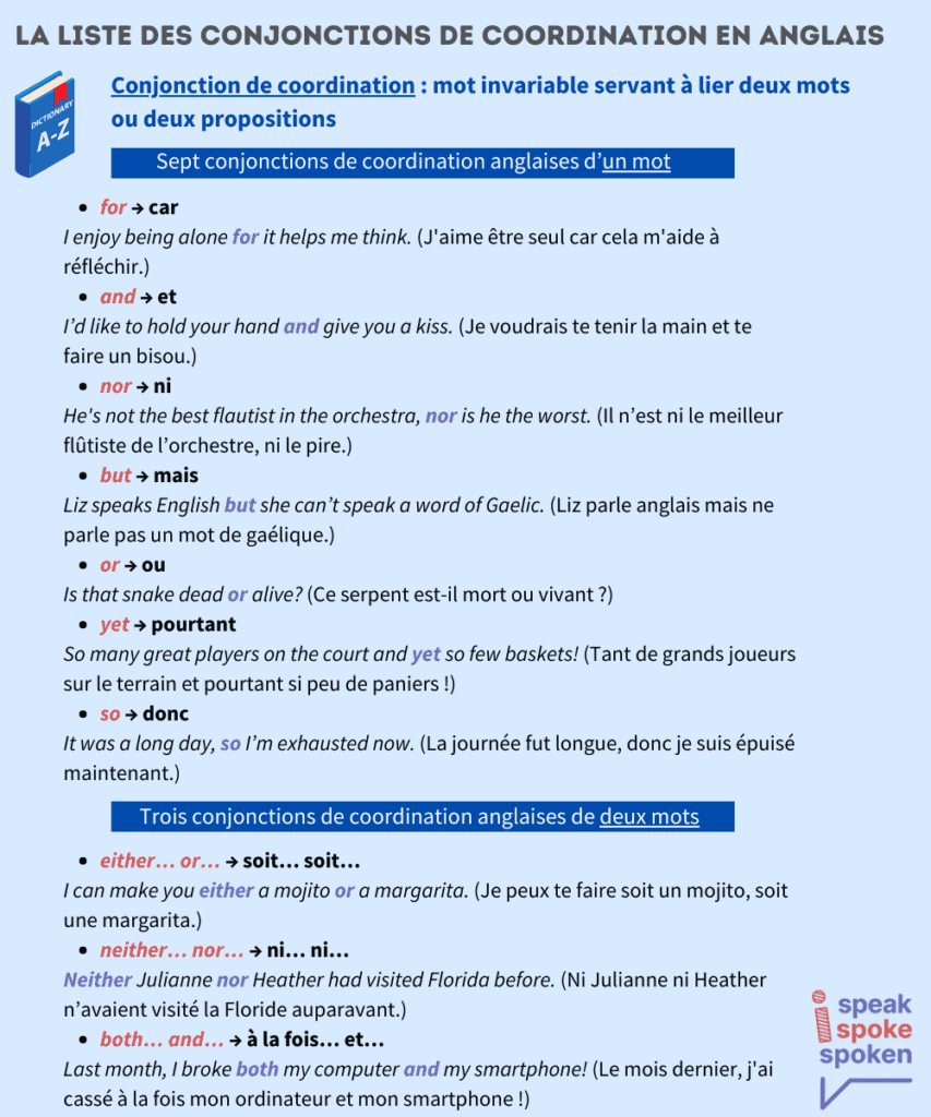 Lista de conjunciones coordinadas en inglés | ISpeakSpokeSpoken