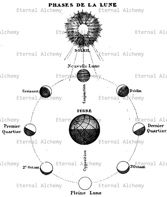 Fases de la Luna Francés Imagen digital vintage Descarga instantánea - Etsy España