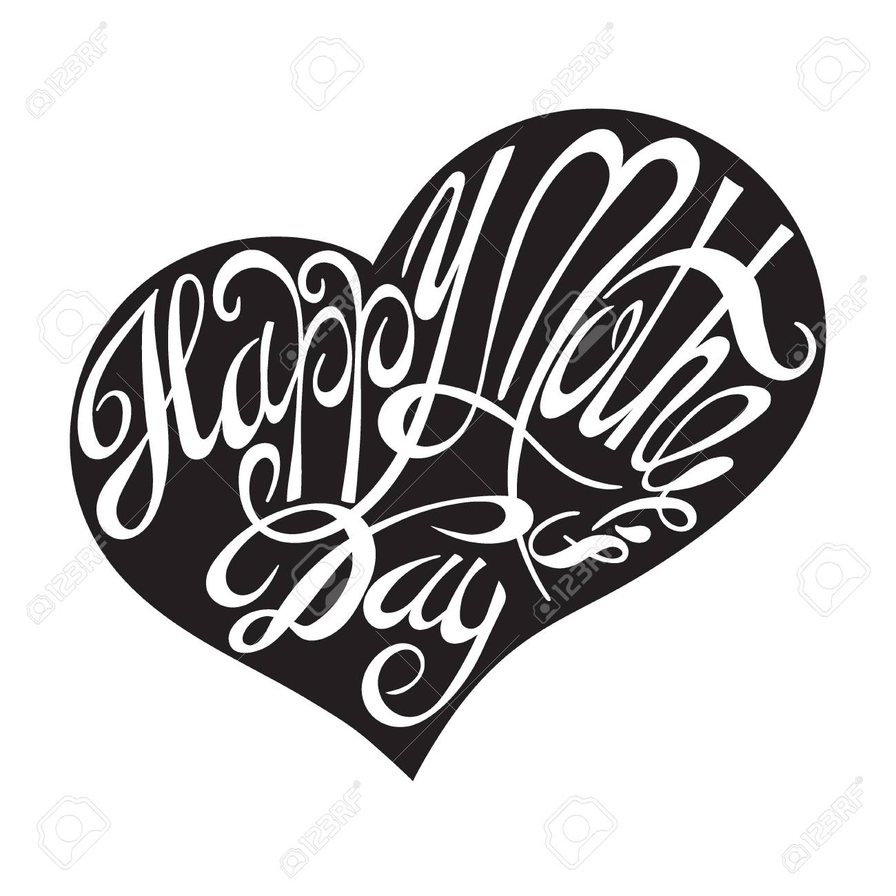 Feliz Tarjeta Linda Griting Día De La Madre. Caligrafía. Las Letras En Blanco Y Negro. Ilustración Del Vector Para Postales, Carteles, Pegatinas Ilustraciones svg, vectoriales, clip art vectorizado libre de derechos. Image