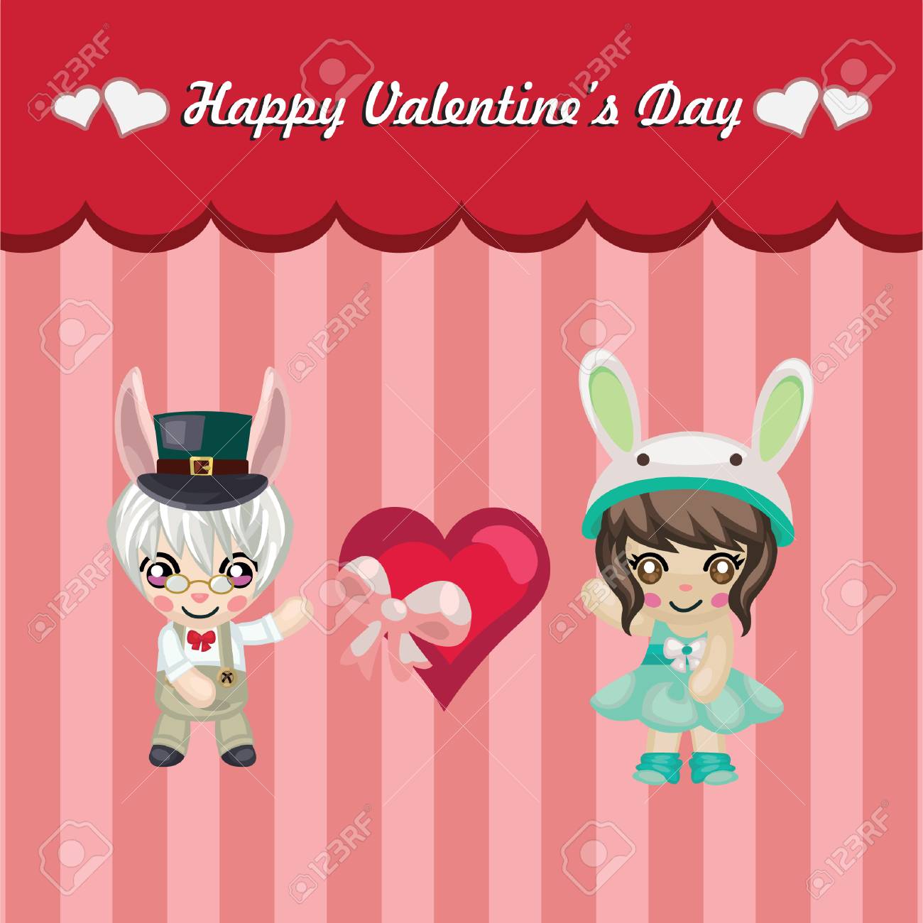 Feliz Día De San Valentín Fondo De Pantalla Y Tarjeta De Felicitación Ilustraciones svg, vectoriales, clip art vectorizado libre de derechos. Image 164124409