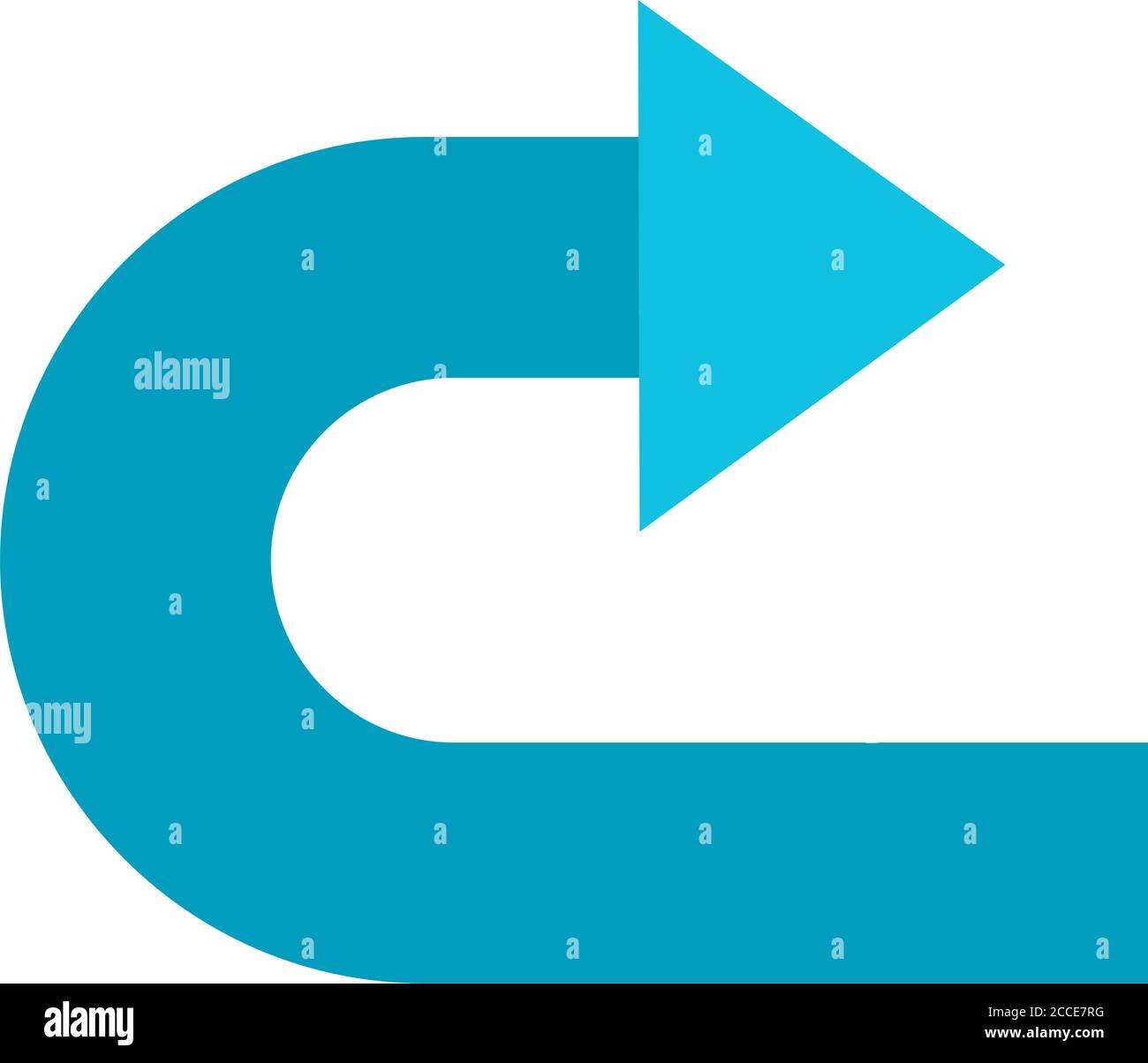 Diseño de icono de flecha derecha curva de estilo plano de la banda de dirección Avance y tema infográfico ilustración vectorial Imagen Vector de stock - Alamy