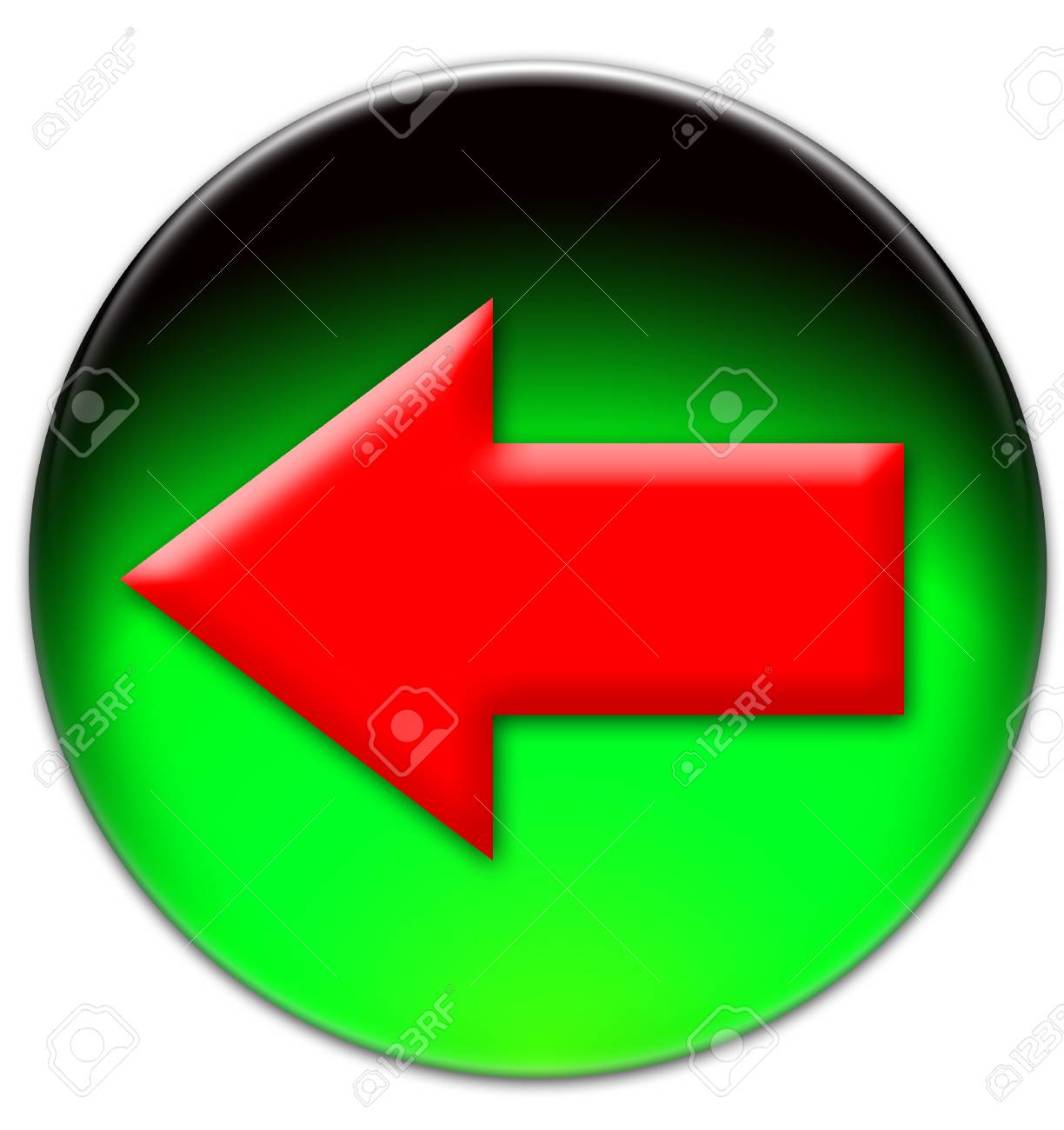 Flecha Roja Que Mira A La Izquierda En El Botón Verde Vidriosos Aislados Sobre Fondo Blanco Fotos, retratos, imágenes y fotografía de archivo libres de derecho. Image 19653939