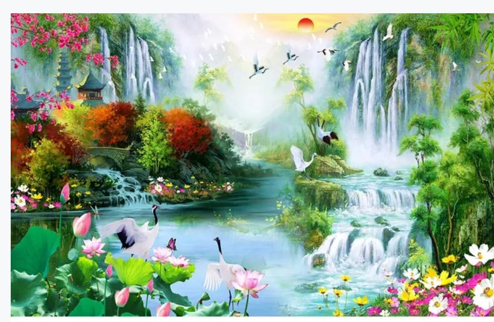 Fondos De Pantalla De Hermosos Paisajes, Fondos De Pantalla De Paisajes De Flores Y Pájaros, Pintura Al Óleo, Sala De Estar, TV, Fondo, Pintura Decorativa De Pared De 33,27 € | DHgate