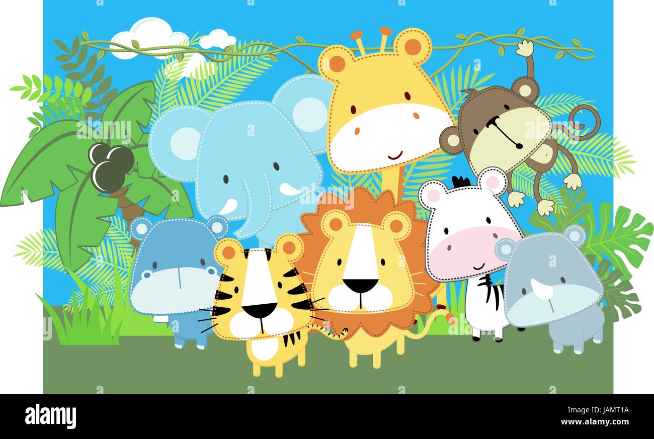 Ilustración vectorial de selva lindo bebé animales y plantas de la selva Imagen Vector de stock - Alamy
