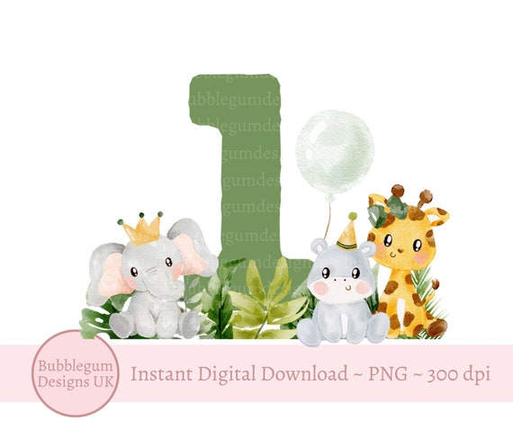 Primer cumpleaños bebé Safari animales PNG, acuarela bebé animales, diseño de sublimación de la selva, diseño de tarjeta de cumpleaños, descarga digital instantánea - Etsy México