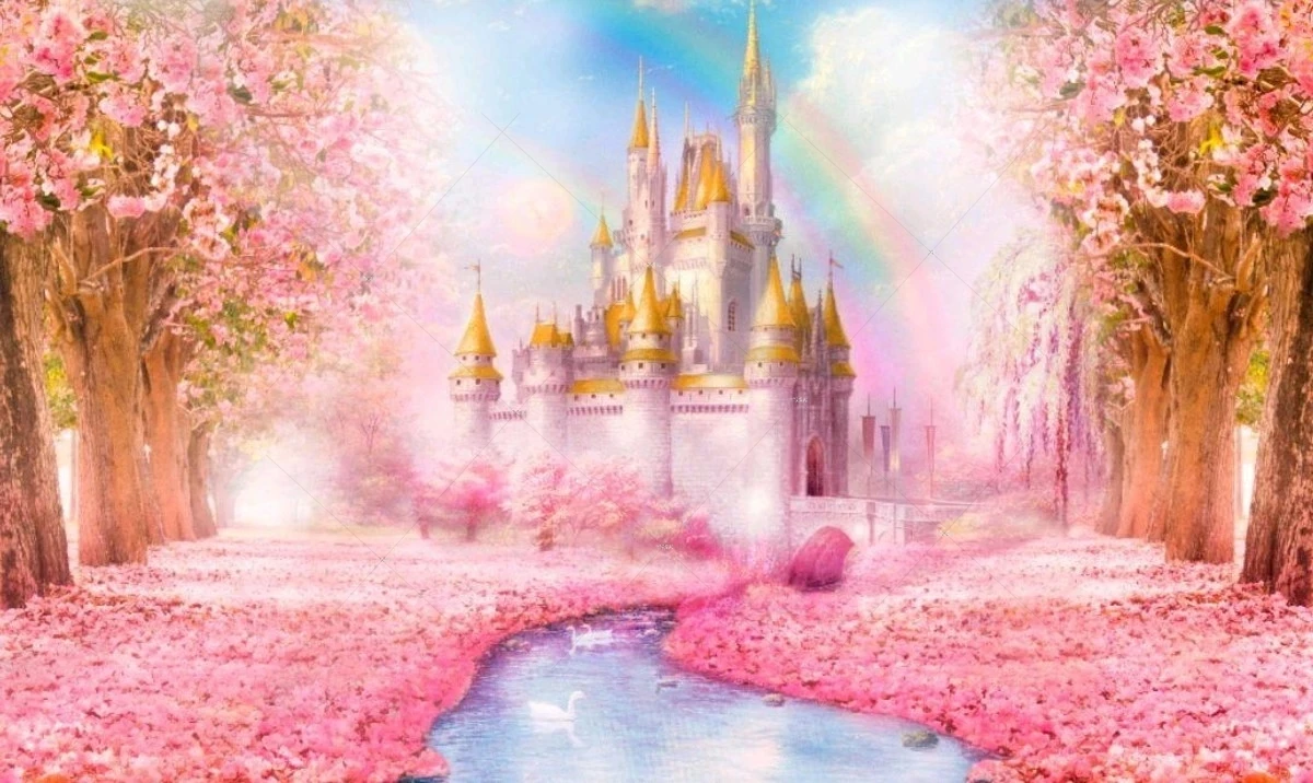 Fondo de bosque encantado del país de las Maravillas, setas, flores de cerezo, Castillo rosa, Princesa, Decoración de cumpleaños para niñas, Fondo de fotografía - AliExpress