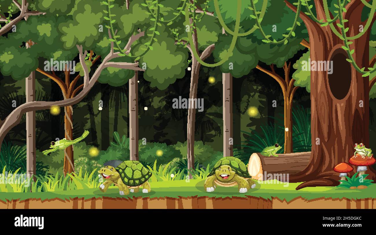 Ilustración De Escena De Fondo De Bosque Encantado De Fantasía De Bosque Ilustraciones svg, vectoriales, clip art vectorizado libre de derechos. Image 187938469