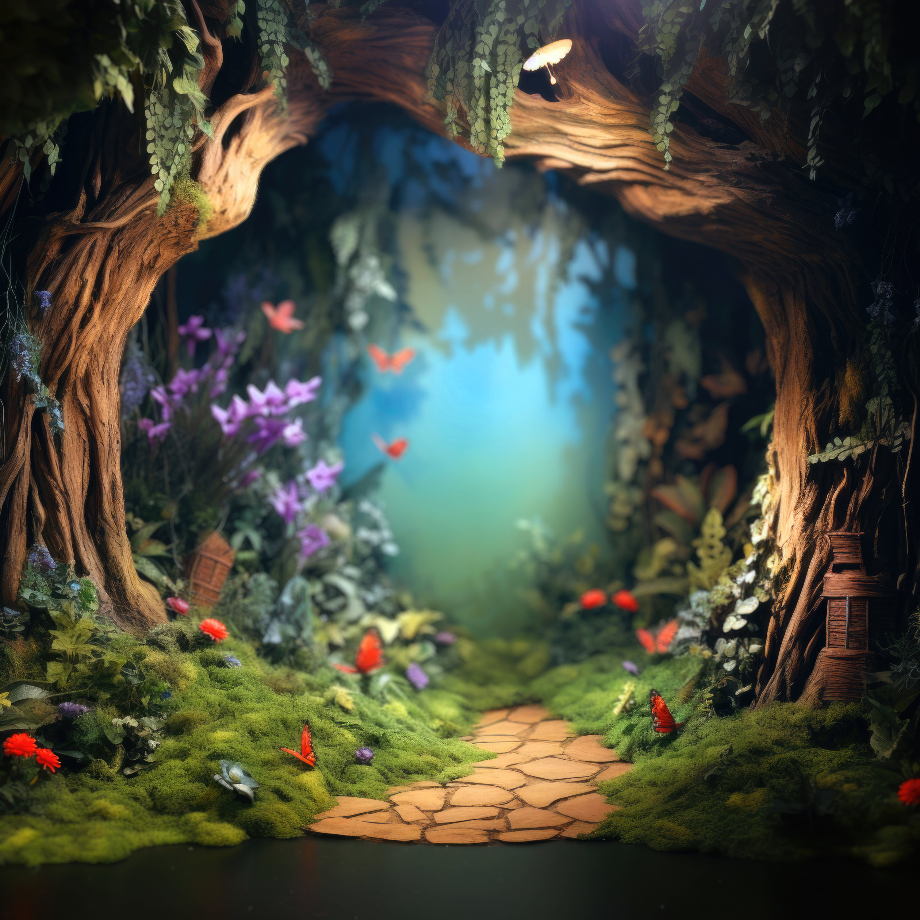 Fondo digital de bosque encantado fantasía, luces y colores, telón de fondo digital lleno de magia, con casas de hadas, pájaros y mariposas - Etsy España
