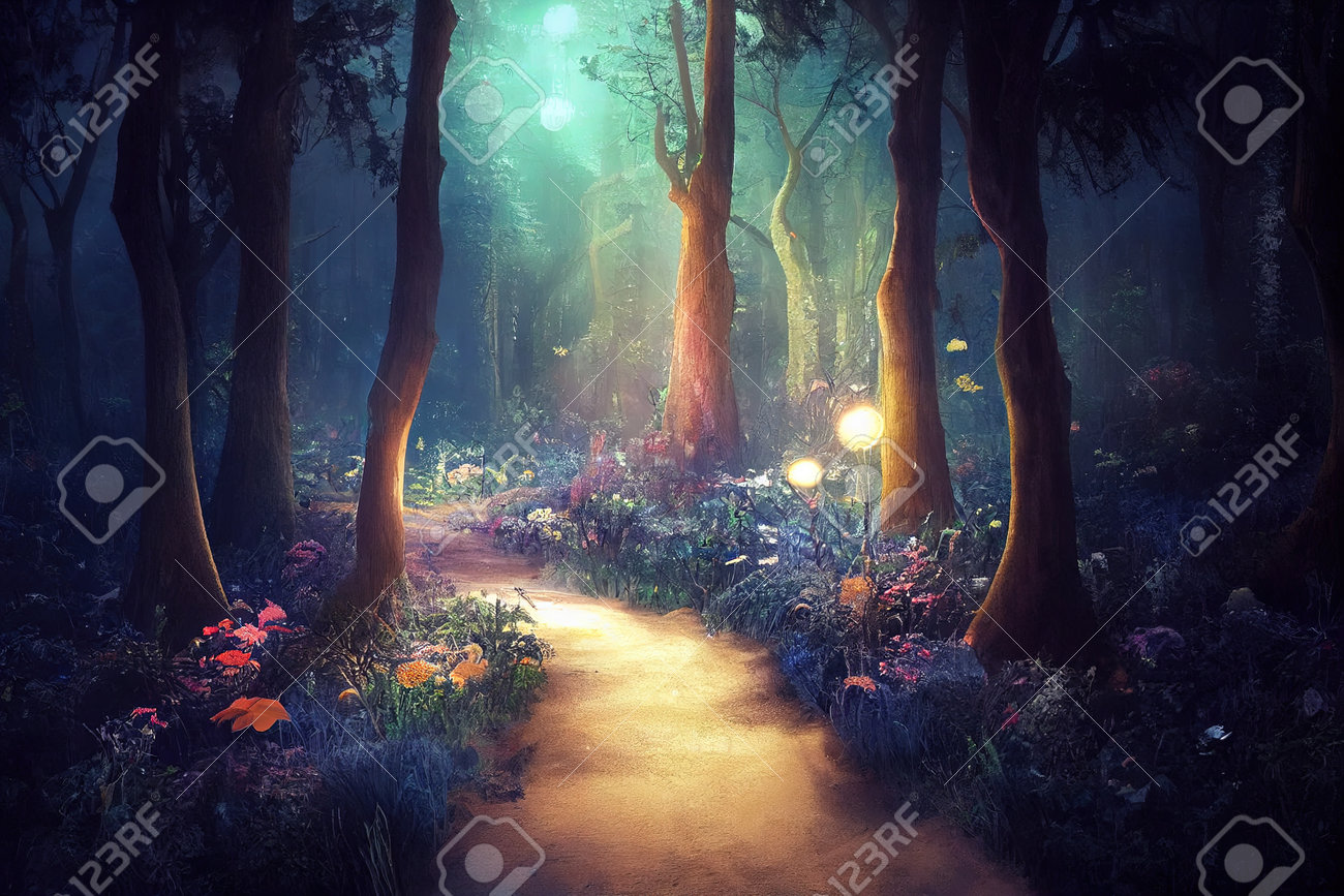 Bosque Encantado De 296 : Un Fondo Mágico Y Encantador Con Una Escena De Selva Etérea En Colores Exuberantes Y Místicos Que Stock de ilustración - Ilustración de exuberante, featuring: 278269615