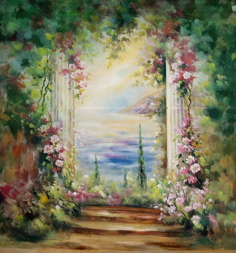 Fondo de entrada de arco de flores de bosque misterioso D1016 – dbackdropes