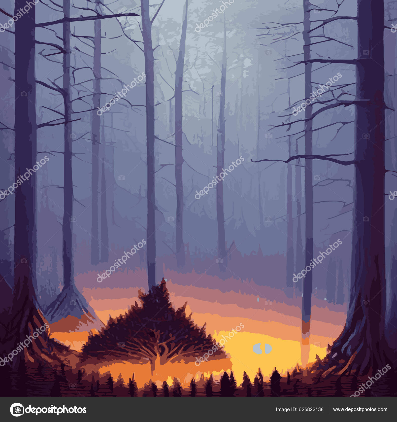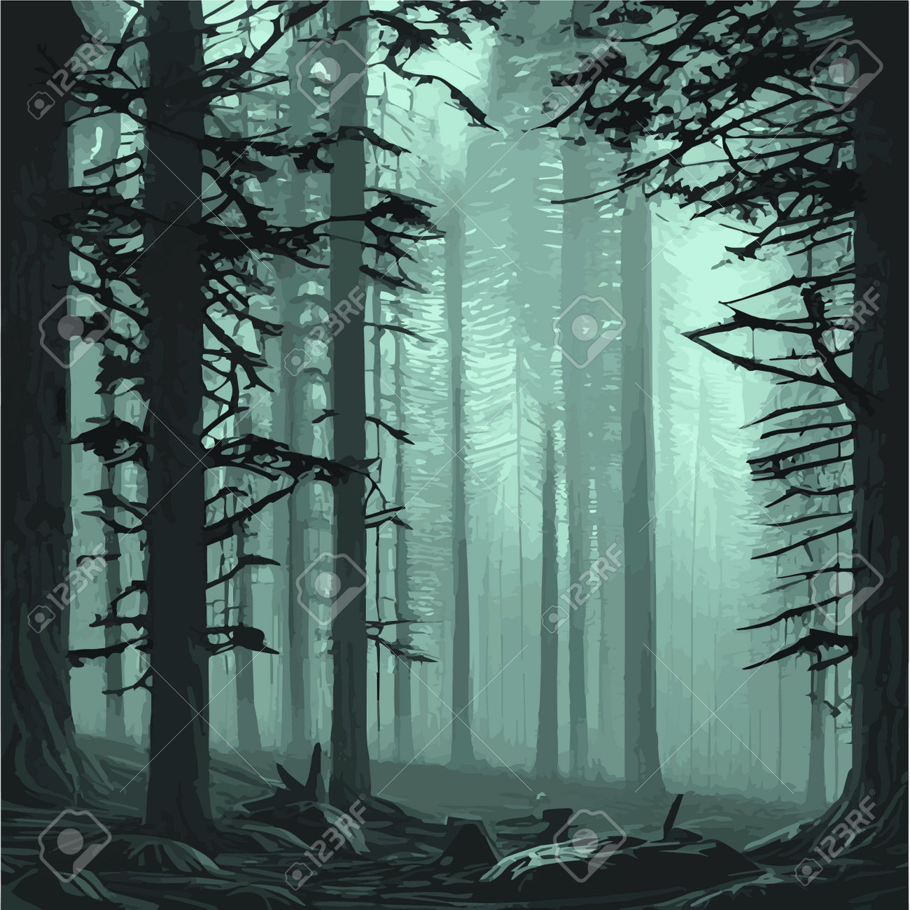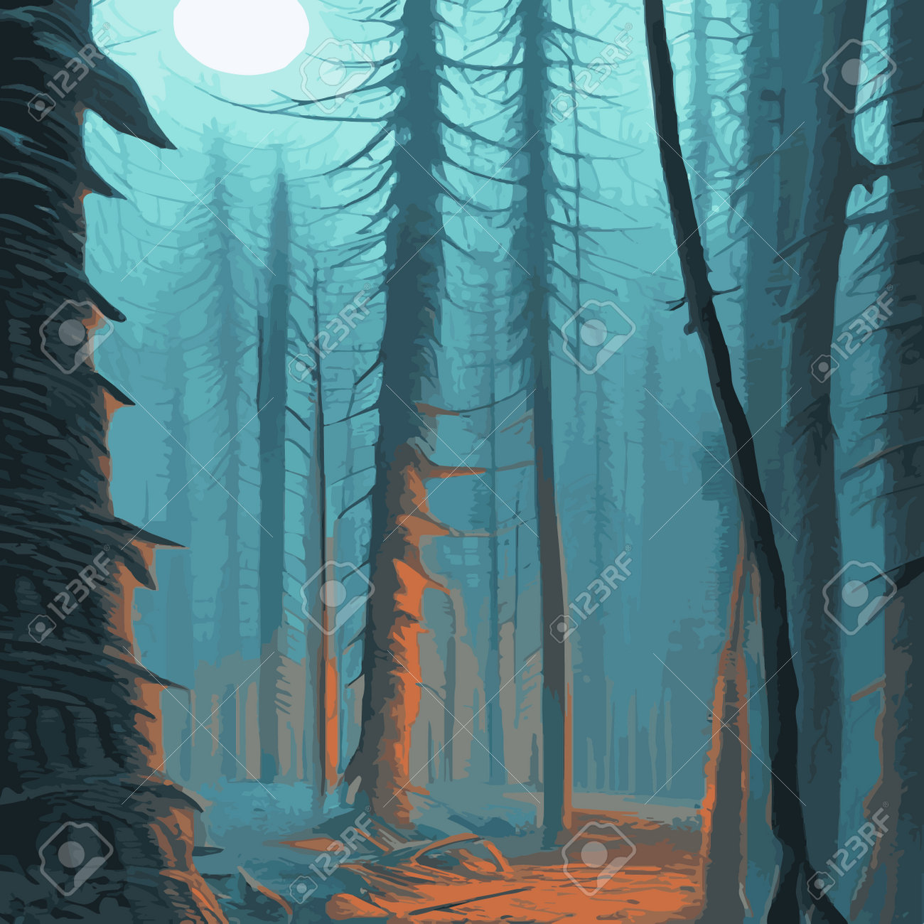 Imprimir Paisaje De Fondo De Bosque Misterioso En La Noche Crepúsculo Bosque Brumoso Dibujos Animados Ilustración Coloreada De Taiga Oscura Ilustraciones svg, vectoriales, clip art vectorizado libre de derechos. Image 191469369