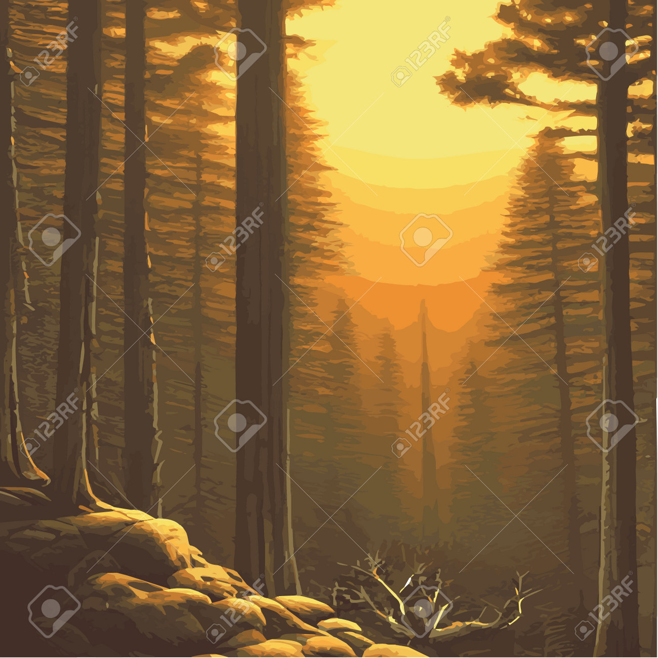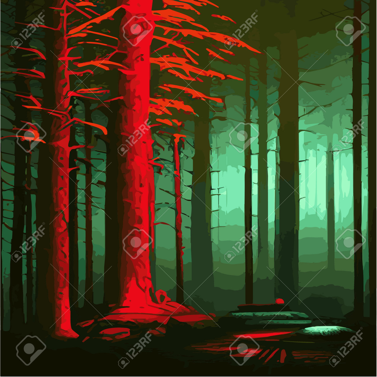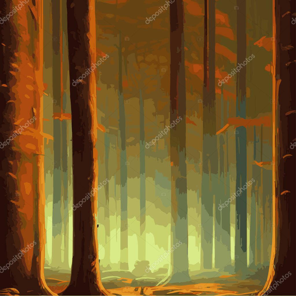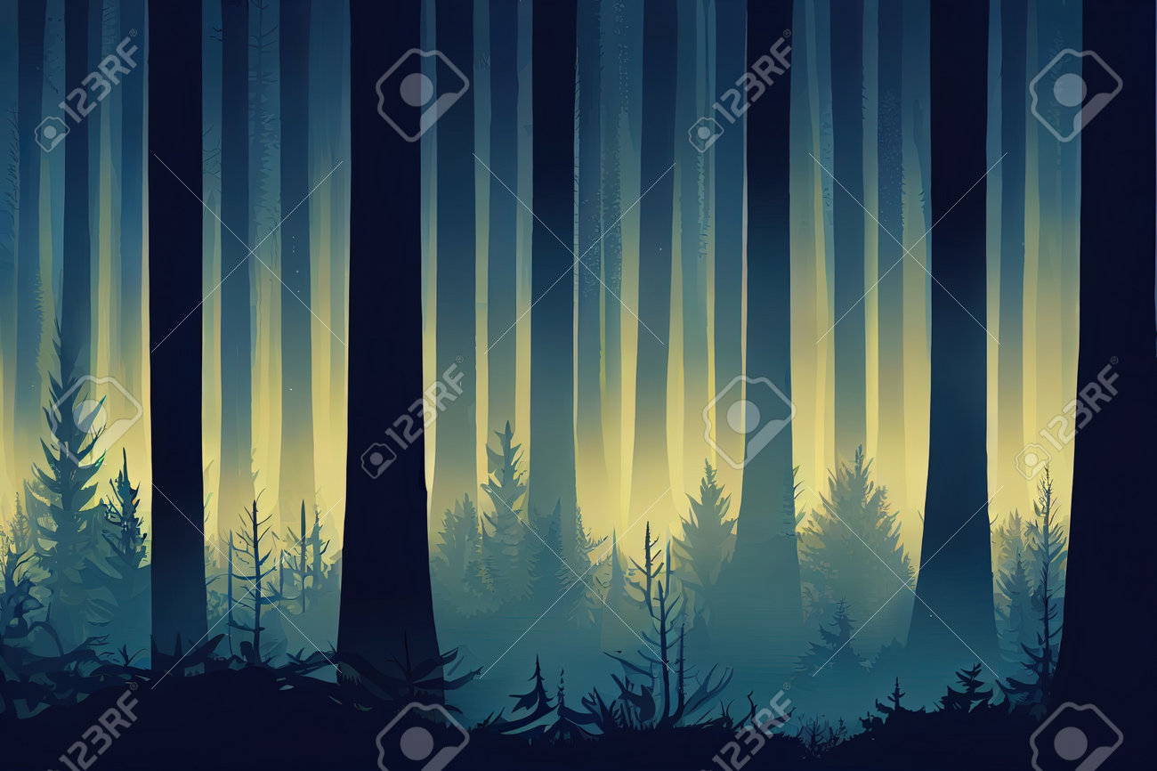 Imprimir Paisaje De Fondo De Bosque Misterioso En La Noche Crepúsculo Bosque Brumoso Dibujos Animados Ilustración Coloreada De Taiga Oscura Ilustraciones svg, vectoriales, clip art vectorizado libre de derechos. Image 191469369