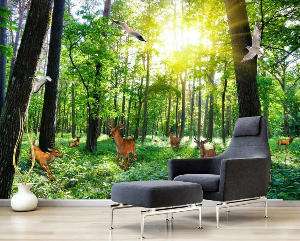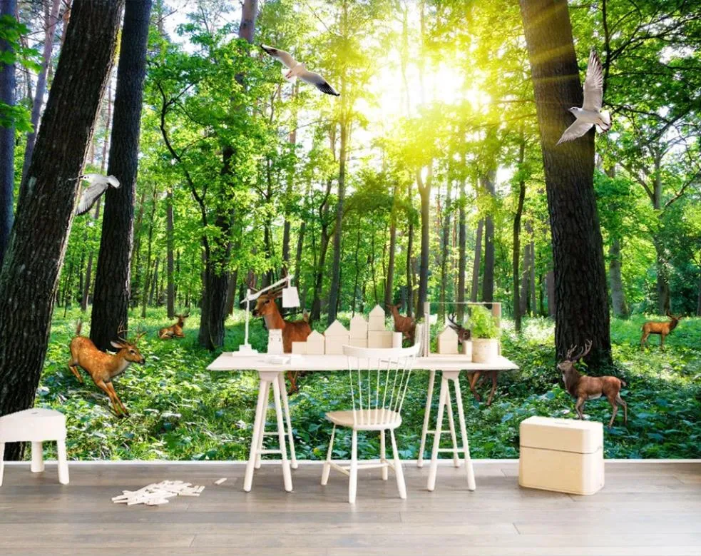 Fondo De Pantalla De Animales 3d Bosque Misterioso Y Tranquilo Ciervos Paisaje Fondo Pared Sala De Estar Dormitorio Revestimiento De Paredes Fondo De Pantalla HD De 34 € | DHgate