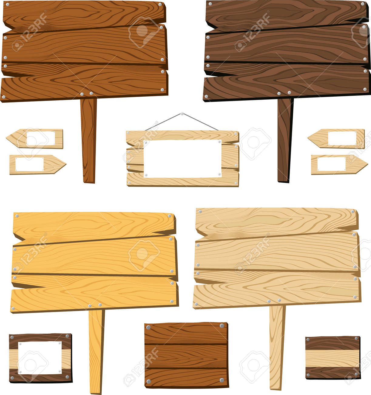 Conjunto De Carteles Y Objetos De Madera Aisladas Sobre Fondo ...