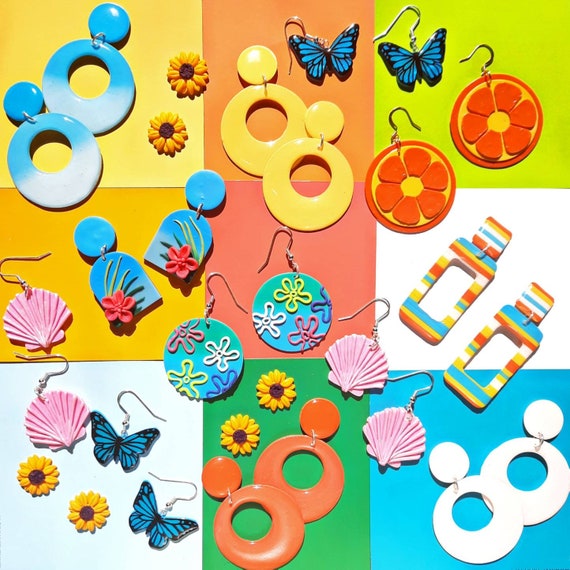 Pendientes de flores del cielo inspirados en Bob Esponja: joyería hippie maravillosa de la década de 1960 Colgantes retro circulares de arco iris Gogo - Etsy España