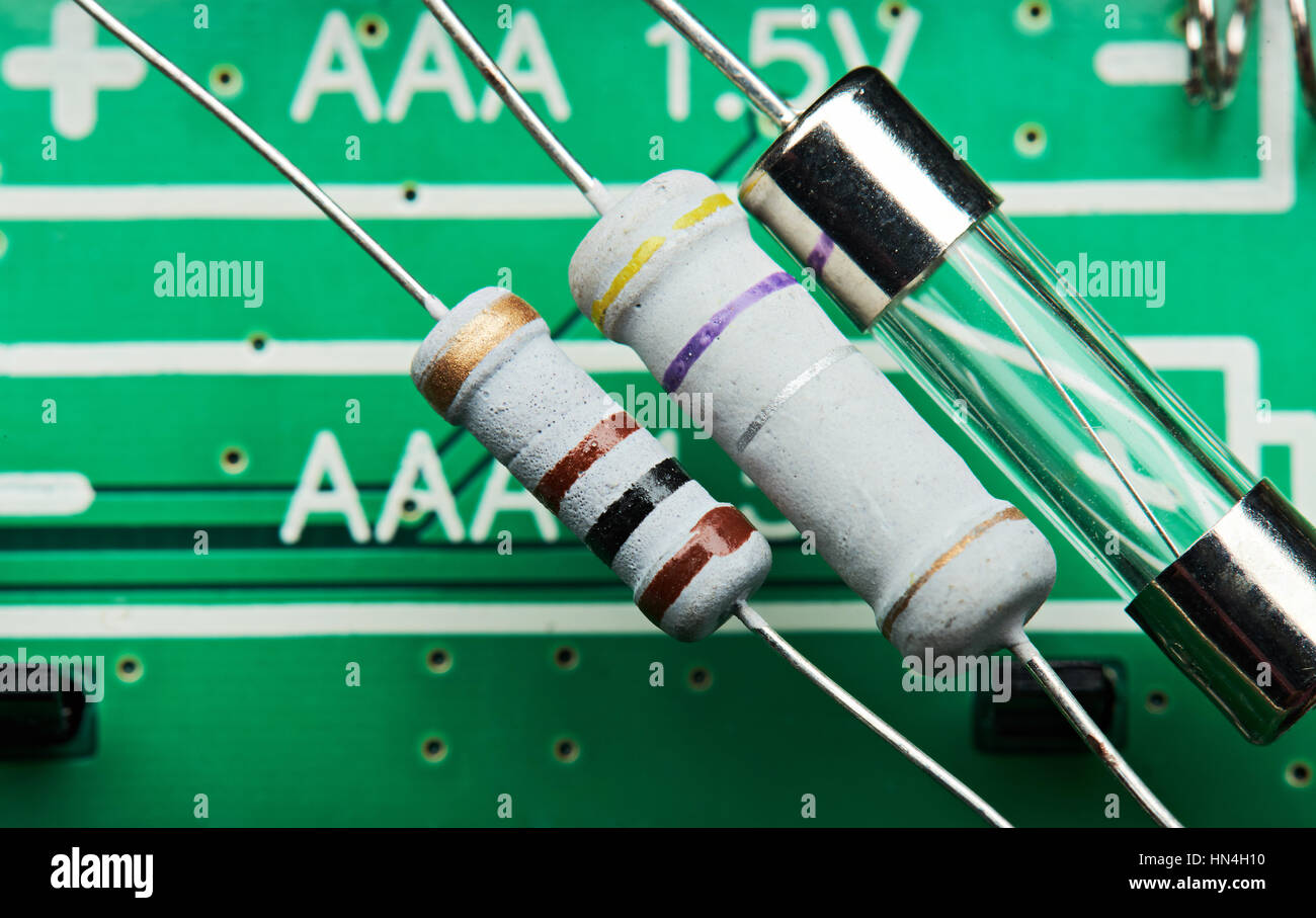 Caja de fusibles y resistencias en verde fondo del circuito eléctrico Fotografía de stock - Alamy