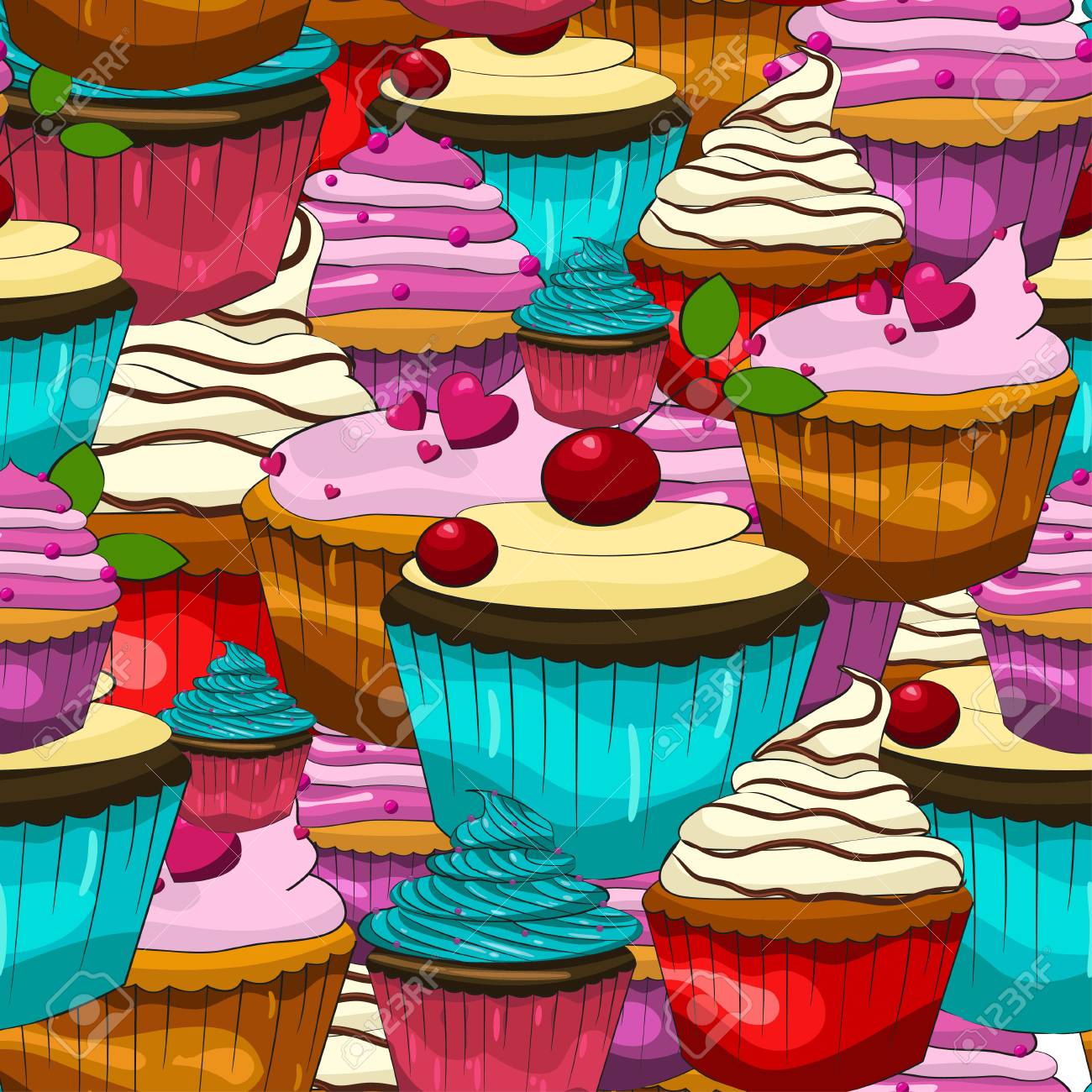 Patrón De Cupcake Colorido. Fondo De Vector. Ilustración De ...