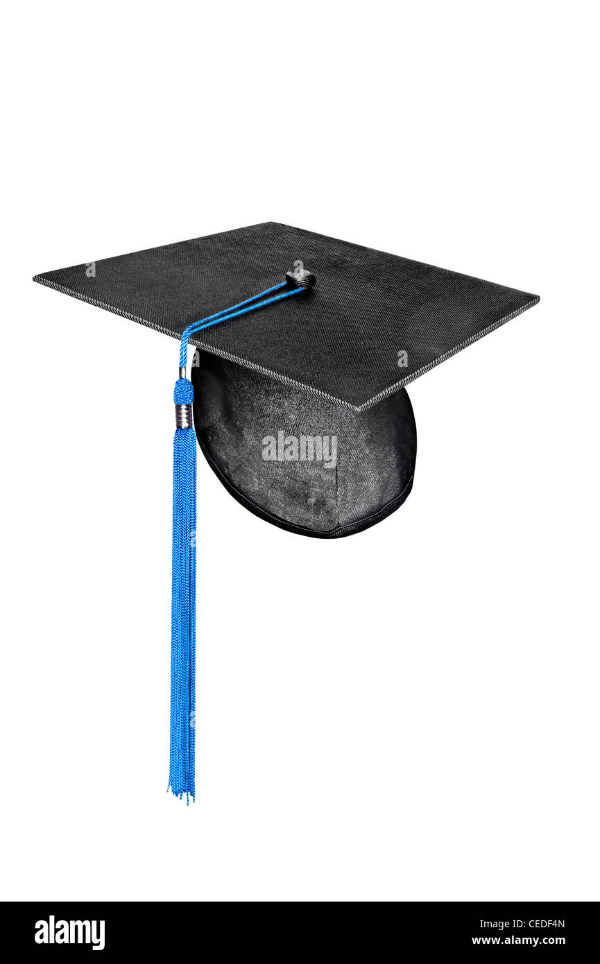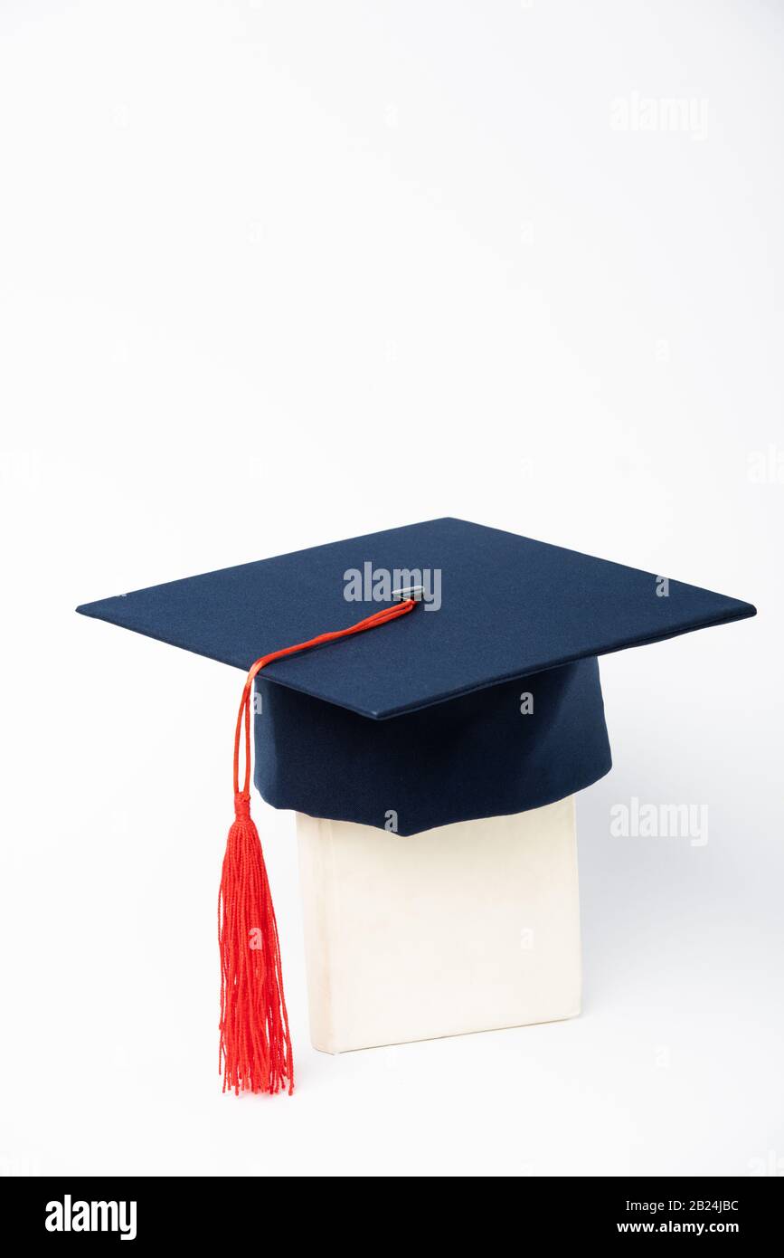 Gorra de graduación azul con borla roja sobre libro sobre fondo blanco Fotografía de stock - Alamy