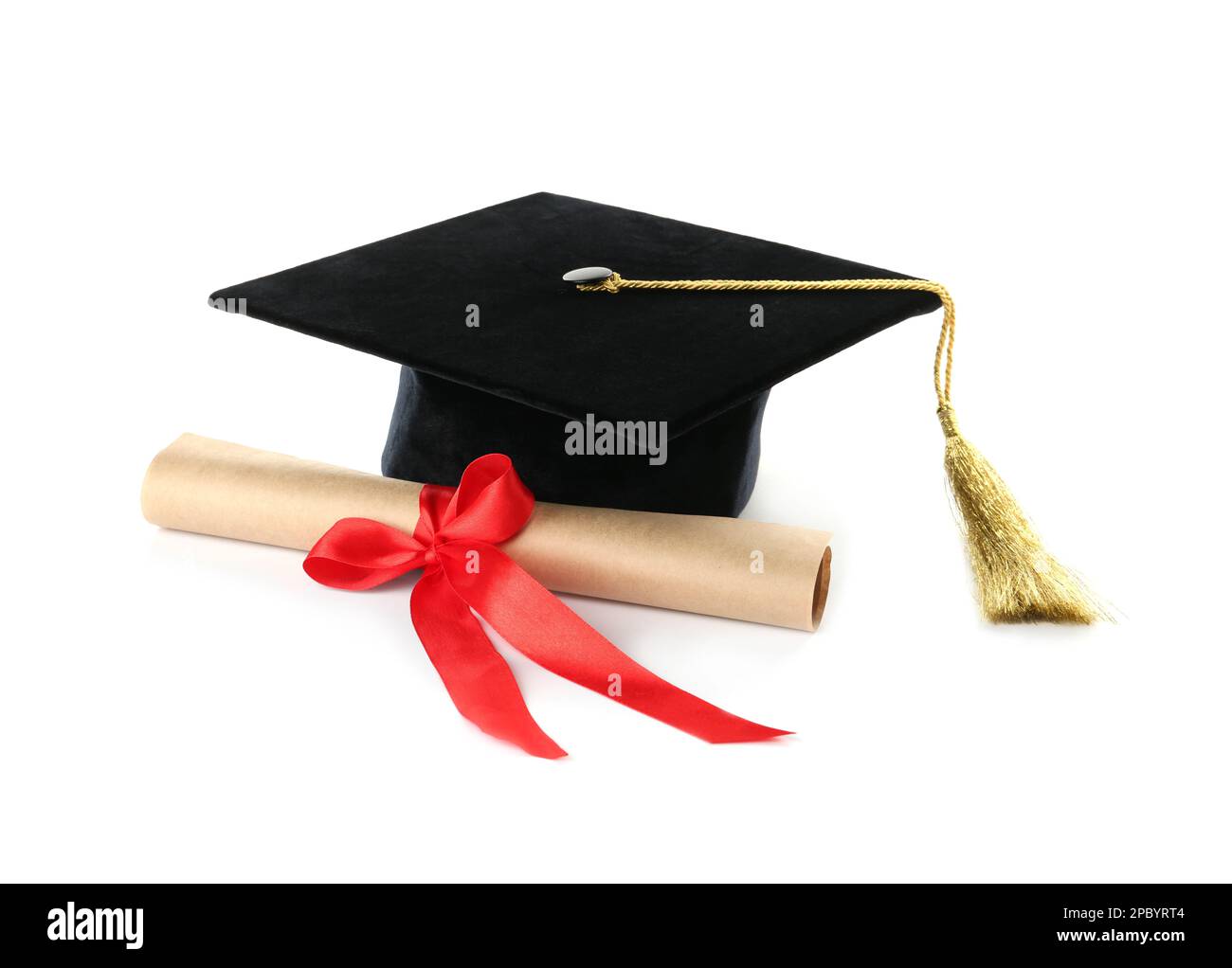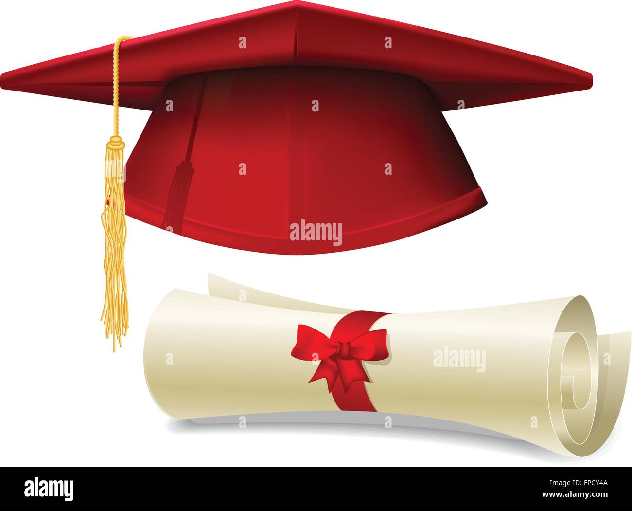 Sombrero de graduación y diploma rojo Imágenes recortadas de stock - Página 3 - Alamy
