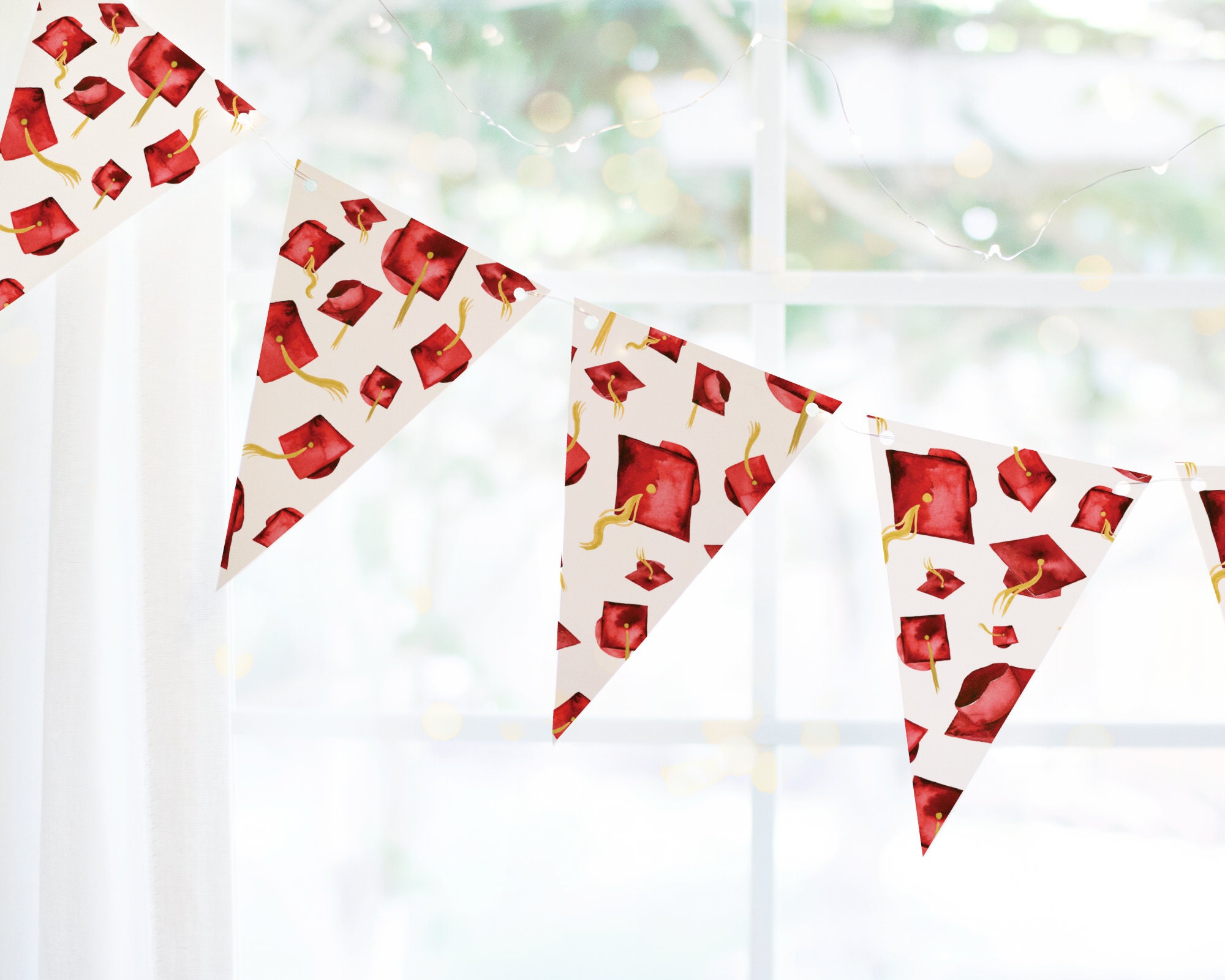 Empavesado de graduación rojo diseño de gorro de graduación IMPRIMIBLE, decoraciones de fiesta de graduación, birrete rojo y borla dorada, estandarte de posgrado - Etsy México