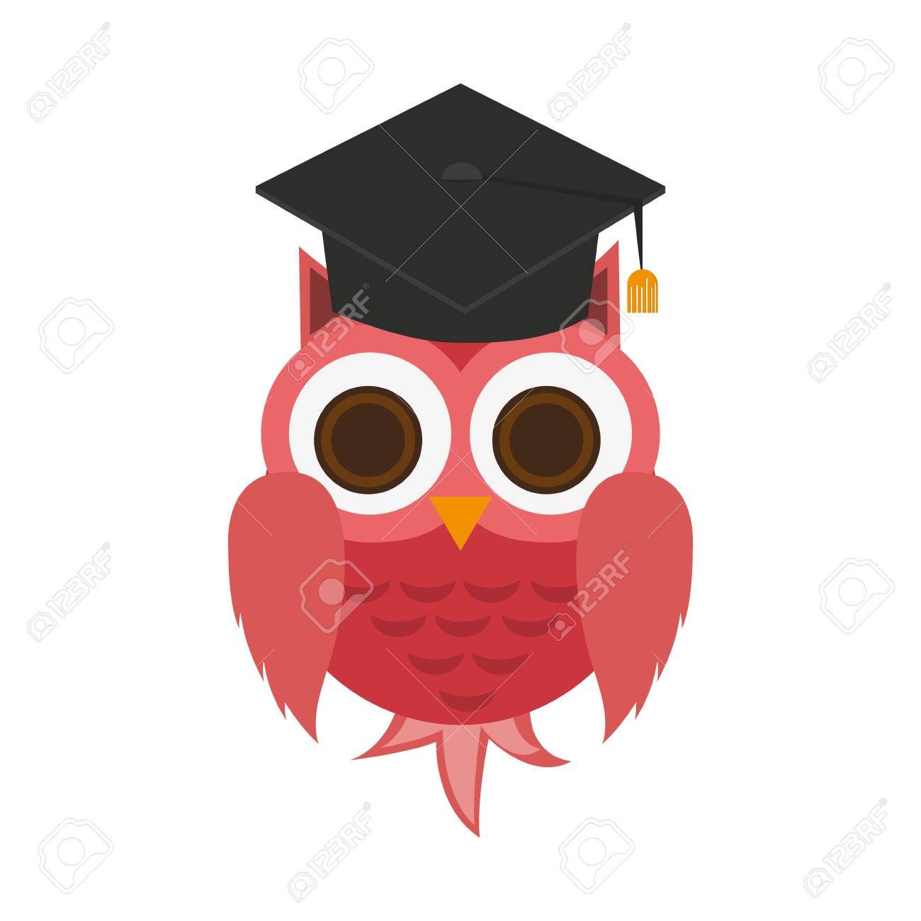 Búho Con Gorro De Graduación Sobre Fondo Blanco. Diseño Colorido. Ilustración Vectorial Ilustraciones svg, vectoriales, clip art vectorizado libre de derechos. Image 70397611