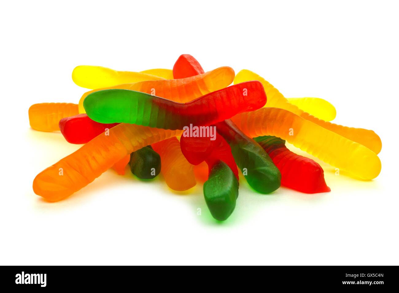 Gusano gomosos caramelos sobre blanco Fotografía de stock - Alamy