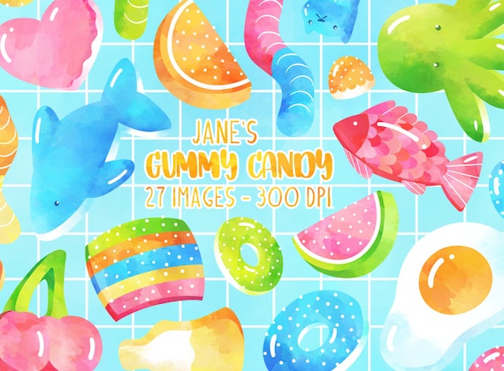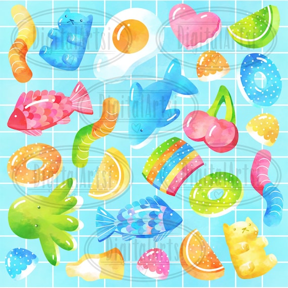 Watercolor Gummy Candy Clipart Candy Download Descarga instantánea Gusanos Gomosos Gominolas Candycore Tiburón Gomoso Oso Pescado Cítricos - Etsy España