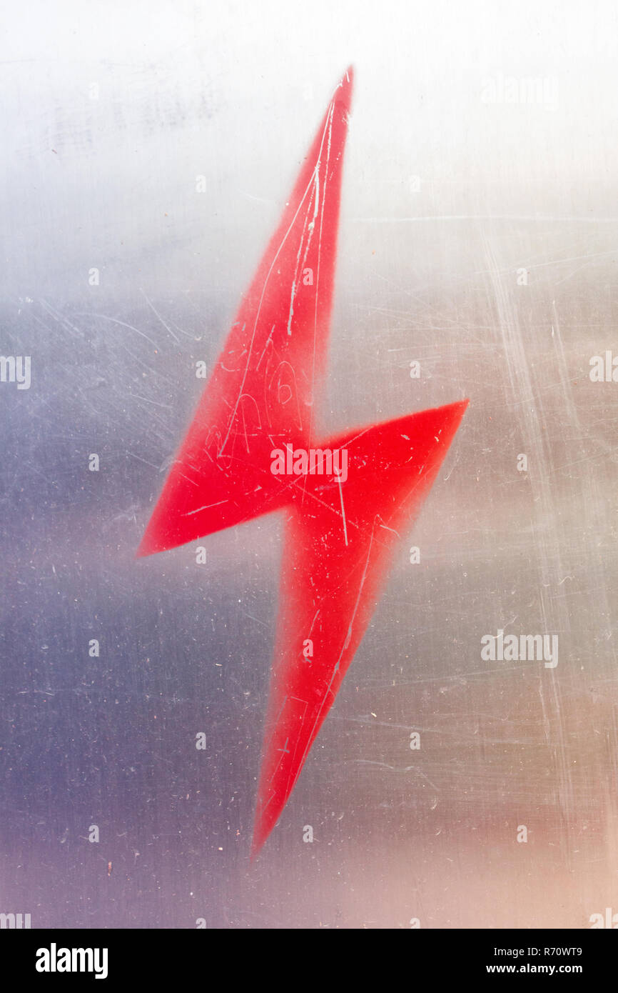 Señal de advertencia de la electricidad sobre el fondo metálico ...
