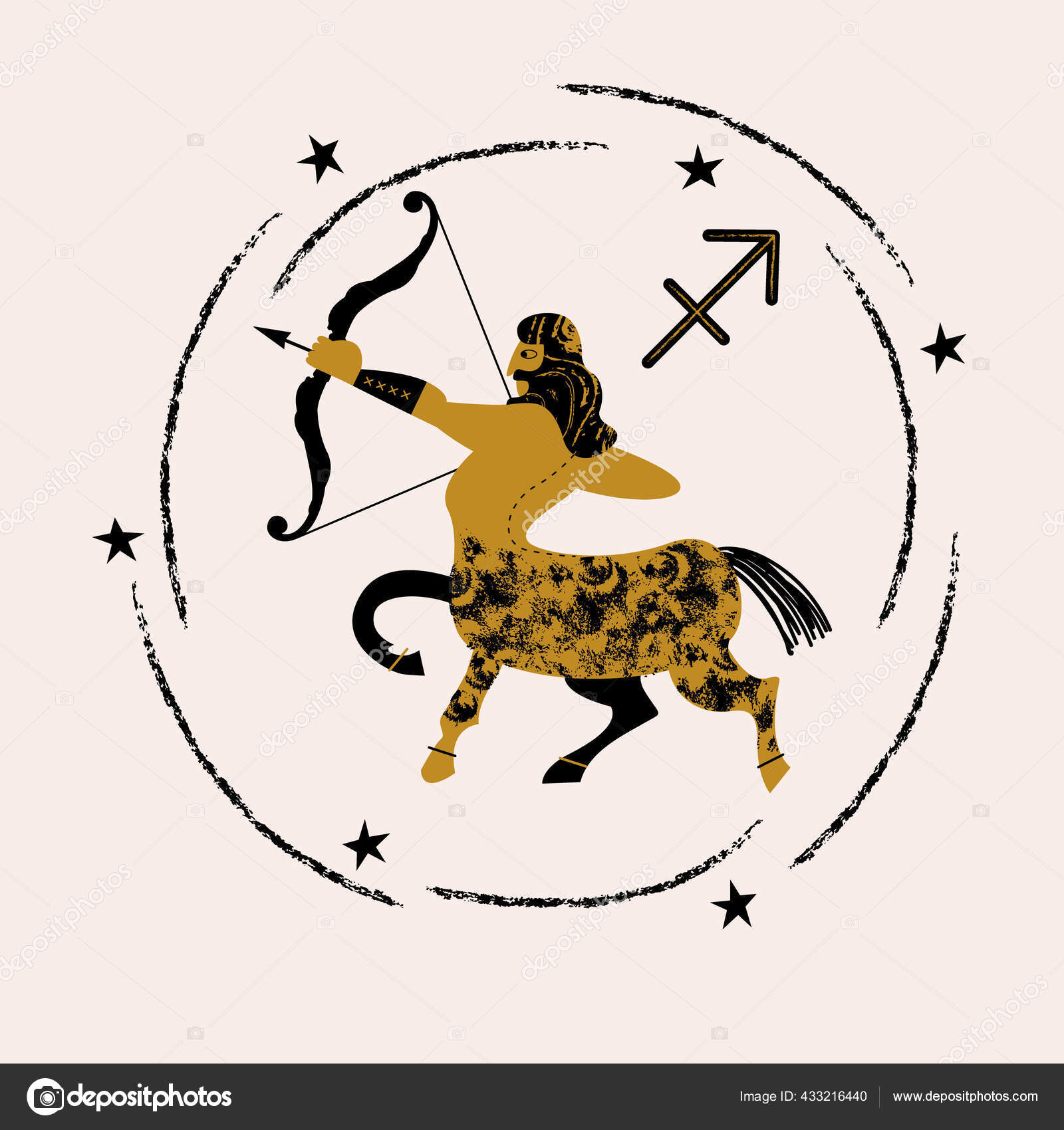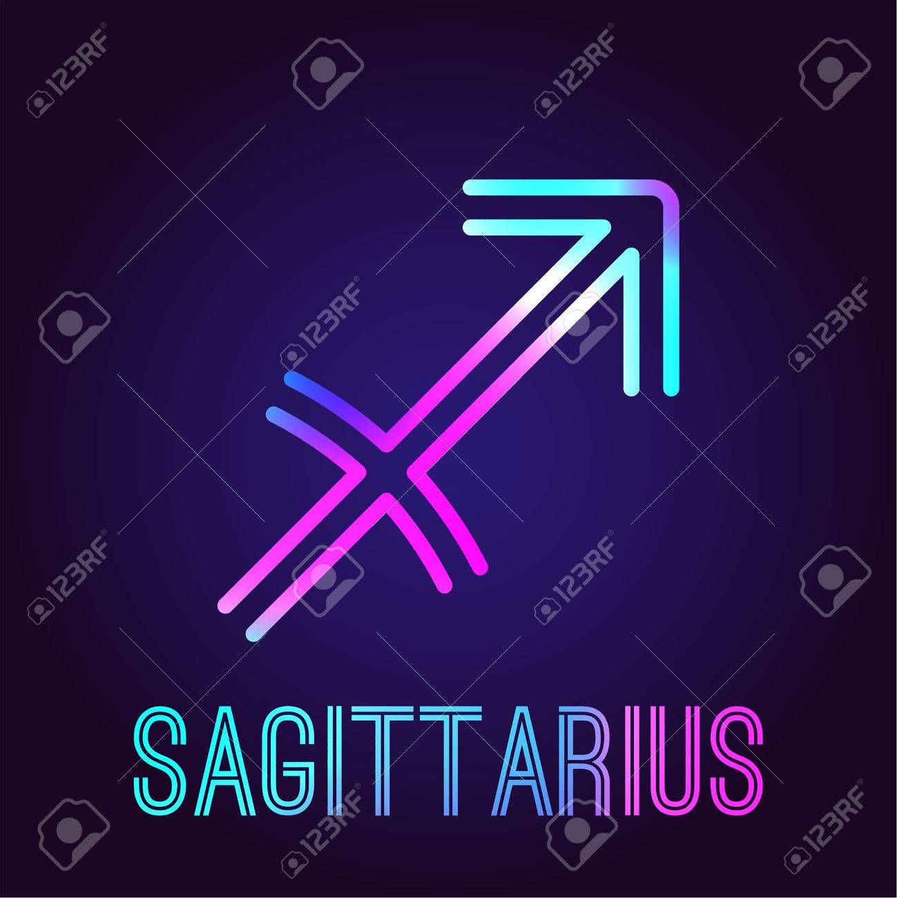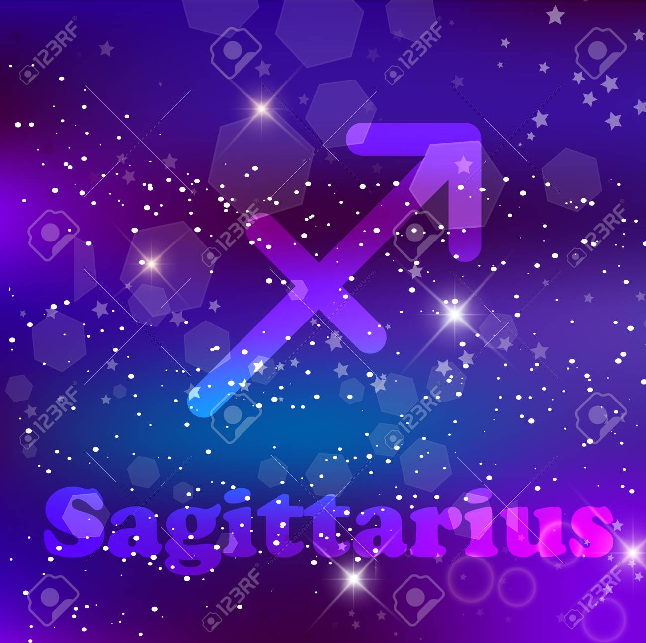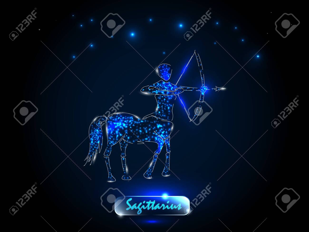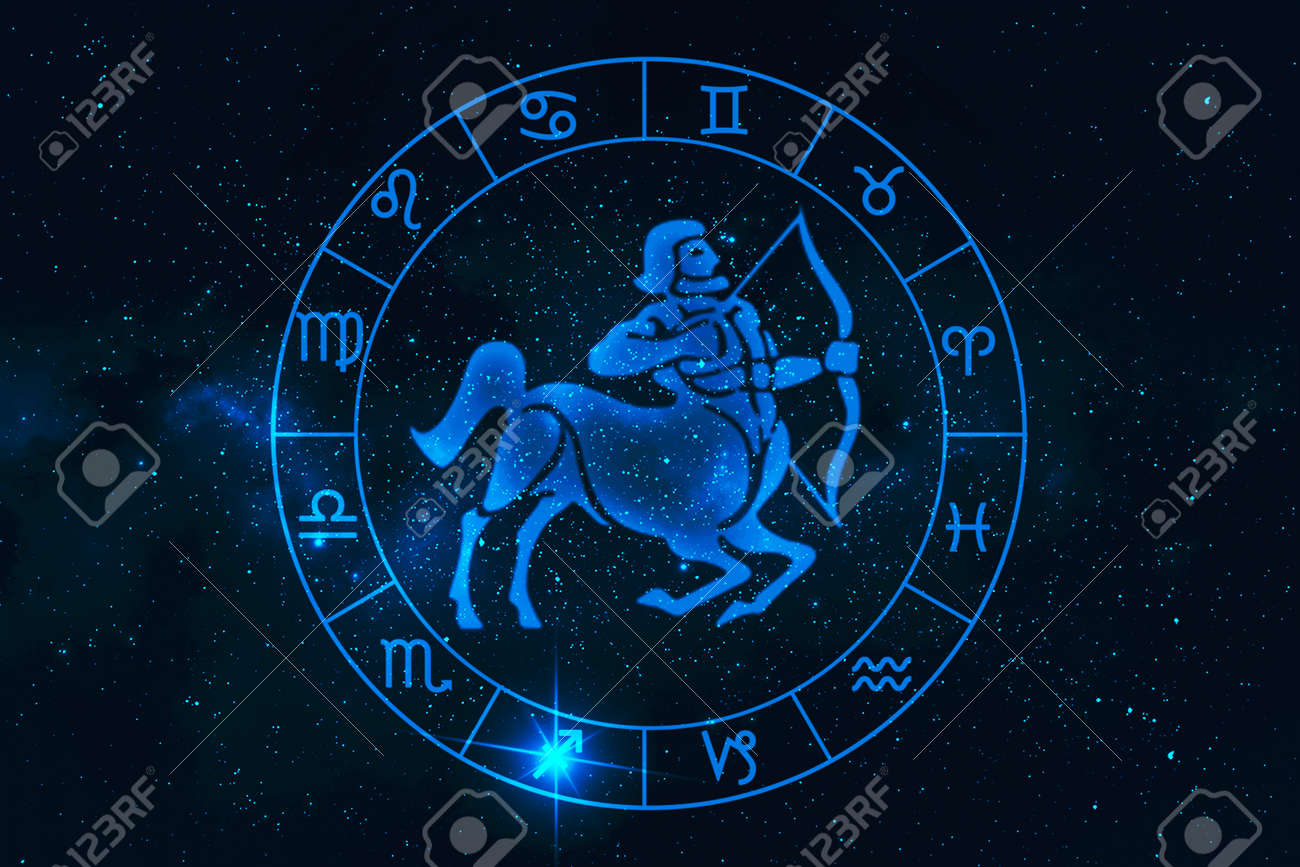 Sagitario Signo Del Zodíaco Y Constelación Sobre Fondo Cósmico Con Estrellas Brillantes Y Nebulosa. Ilustración, Pancarta, Póster, Tarjeta De Arquero. Espacio, Astrología, Horóscopo, Astronomía, Diseño De Fantasía. Fotos, retratos, imágenes y fotografía