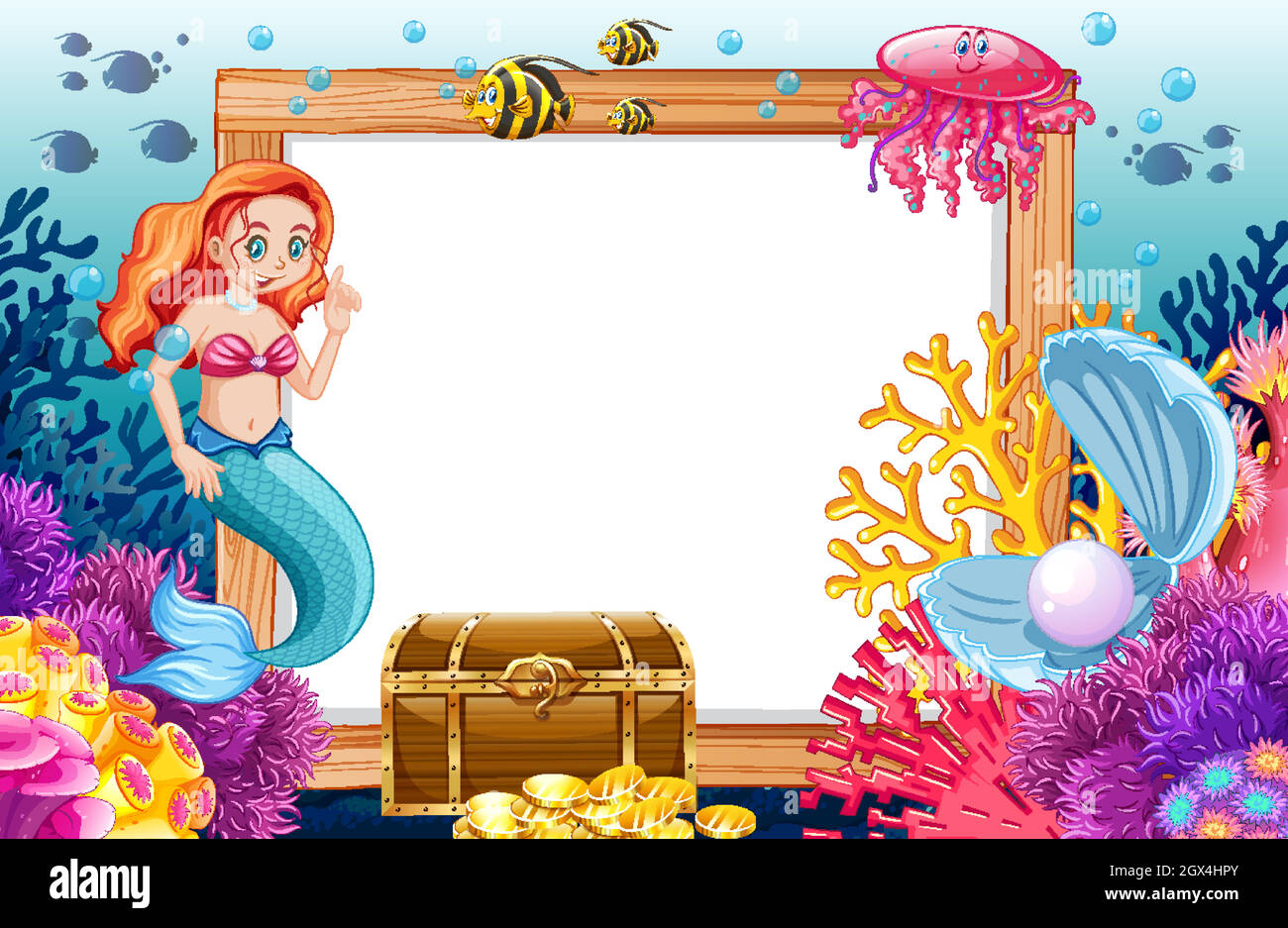 Conjunto de sirena y animales de mar estilo dibujos animados sobre fondo de la ilustración Imagen Vector de stock - Alamy