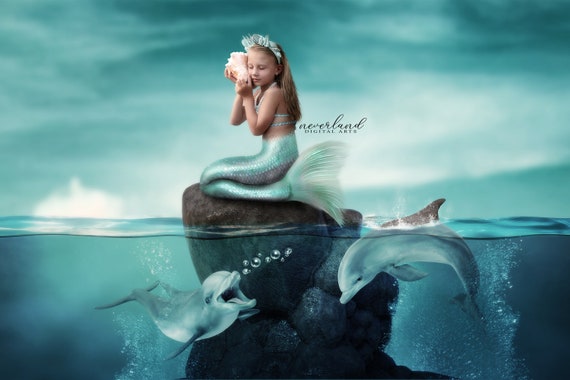 Fondo digital de sirena con cola incluida en la escena. Telón de fondo digital para fotografía. 2 versiones. - Etsy España