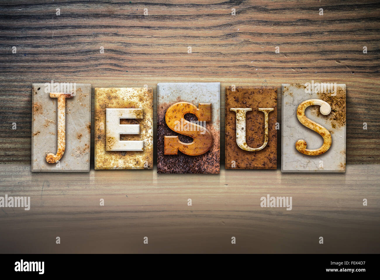 El nombre de Jesús concepto escrito en tipografía vintage retro metal sobre un fondo de madera Fotografía de stock - Alamy
