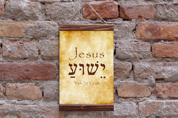 El nombre de Jesucristo de Nazaret en caligrafía hebrea e inglesa Impresión de lienzo enmarcado en madera, decoración de arte de pared de fondo envejecido - Etsy España