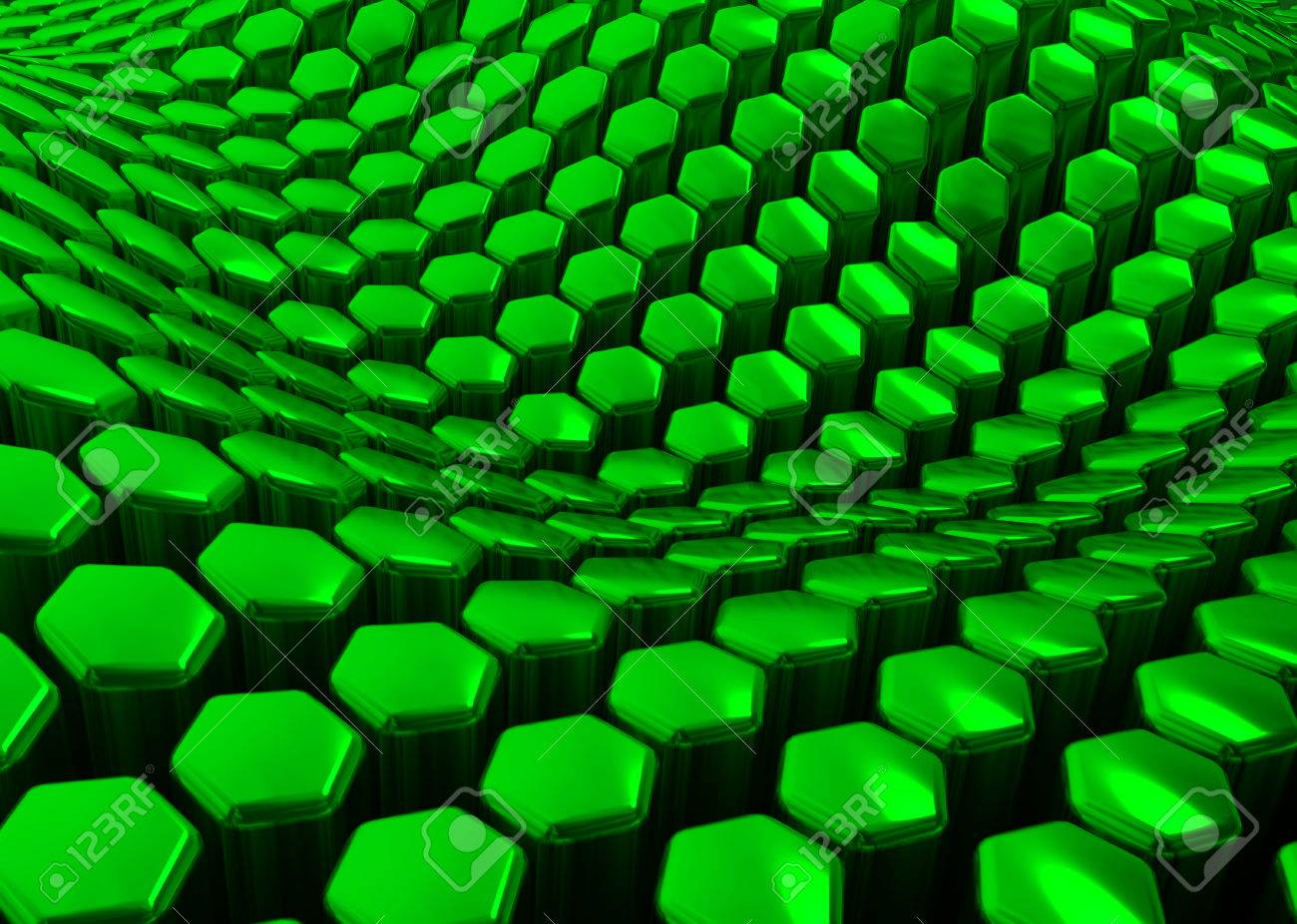 Глянцевый Абстрактный Зеленый Фон Из Шестиугольников - 3D Визуализации Фотография, картинки, изображения и сток-фотография без роялти. Image 34021101
