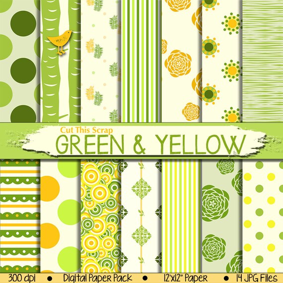 Papel digital verde y amarillo: fondos verde claro verde lima amarillo verde oscuro con lunares, rayas, flores patrones sin costuras - Etsy España