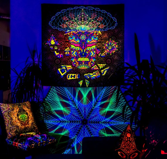 Tapiz de hongos, Fondo UV del festival, Decoración de pared hippie, Arte Psy Trance, Colgante de pared psicodélico, Decoración fluorescente, Tapiz UV Trippy - Etsy México
