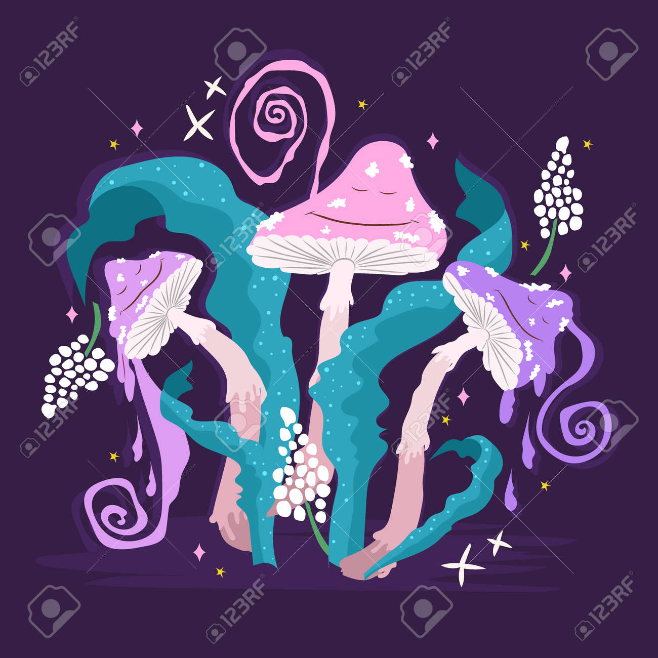 Colorida Ilustración De Hongos Psicodélicos Con Fondo Oscuro. Ilustración De Hongos Psicodélicos Psicodélicos. Fotos, retratos, imágenes y fotografía de archivo libres de derecho. Image 198858451