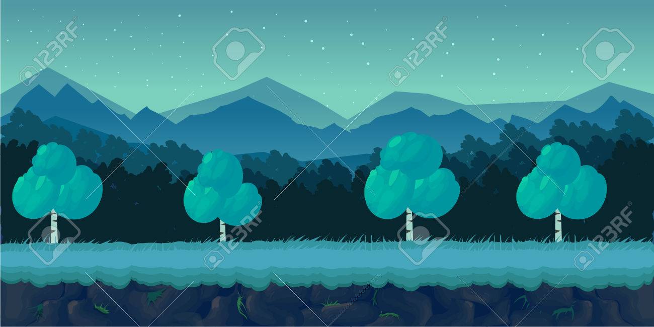 Fondo Del Bosque Bosque De Noche Juego Para La Aplicación De Juegos 2d. Diseño Del Vector. Alicatables Horizontalmente. Tamaño 1024x512. Ilustraciones svg, vectoriales, clip art vectorizado libre de derechos. Image 59737994