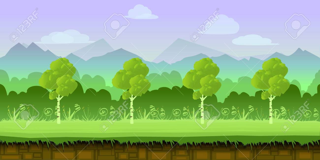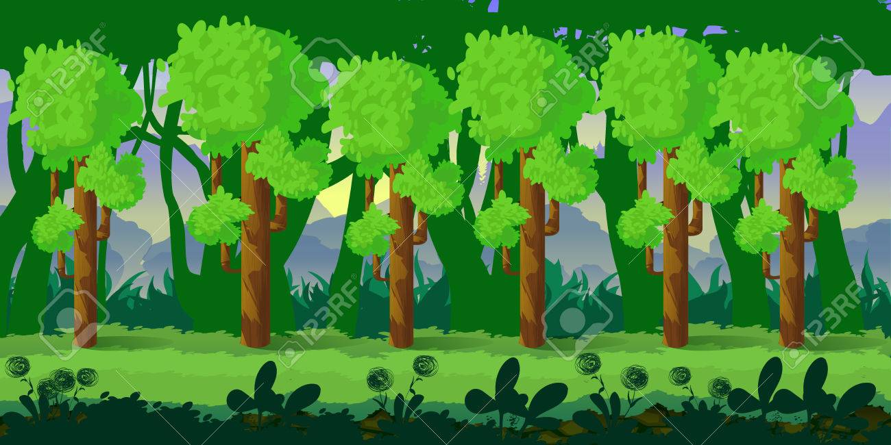 Bosque Juego De Fondo De La Aplicación De Juegos 2d. Diseño Del Vector. Ilustraciones svg, vectoriales, clip art vectorizado libre de derechos. Image 55944643