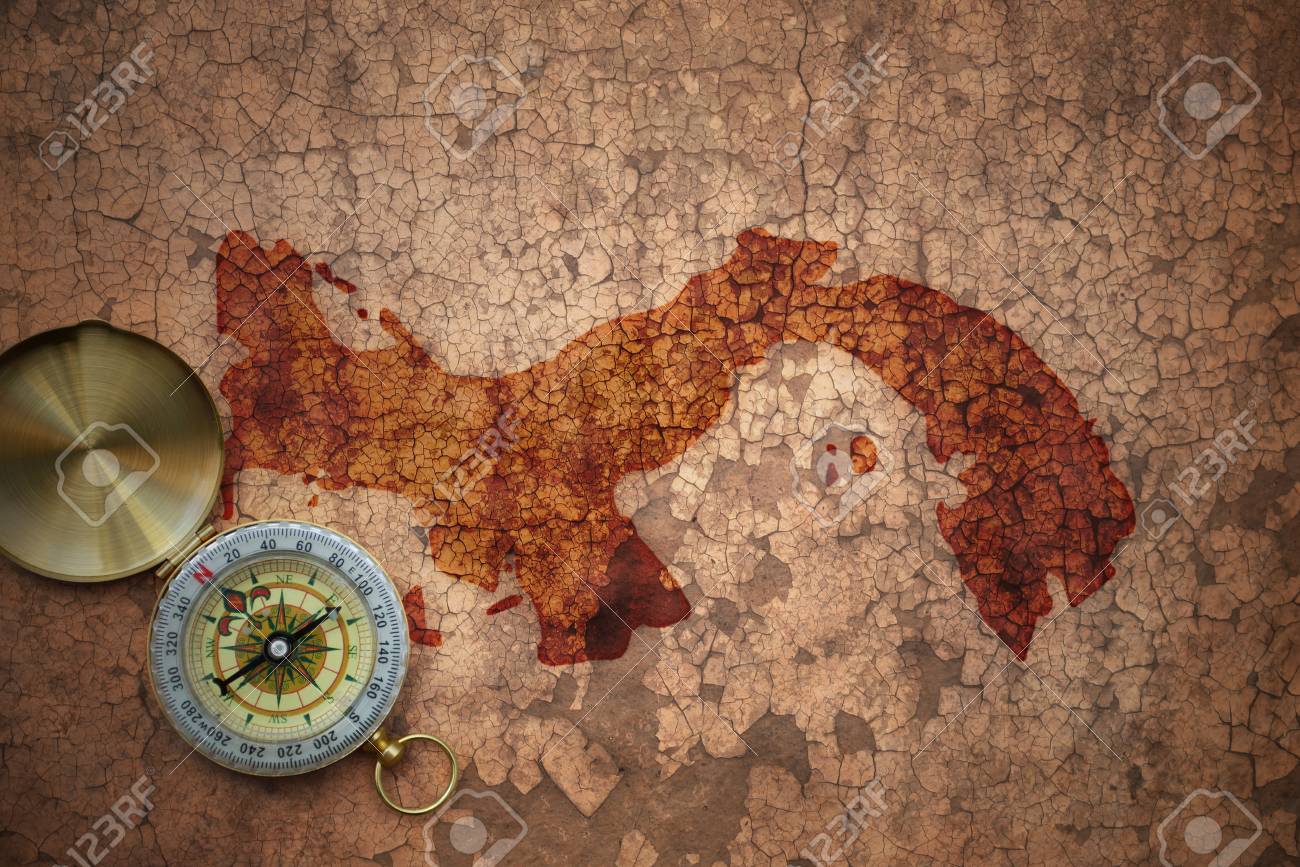 Mapa De Panamá En Un Viejo Fondo De Papel De Crack Vintage Con ...