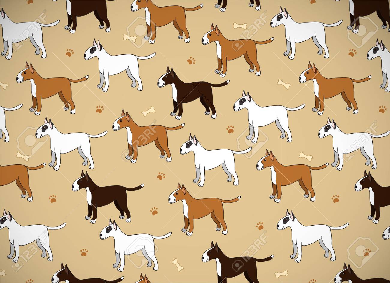 Interesante Tarjeta De Felicitación Con Lindos Perros De Dibujos Animados. Casta Más Bullterier. Bueno Para Fondo De Pantalla, Rellenos De Patrón, Tarjetas De Felicitación, Fondos De Página Web, Papel De Regalo Y