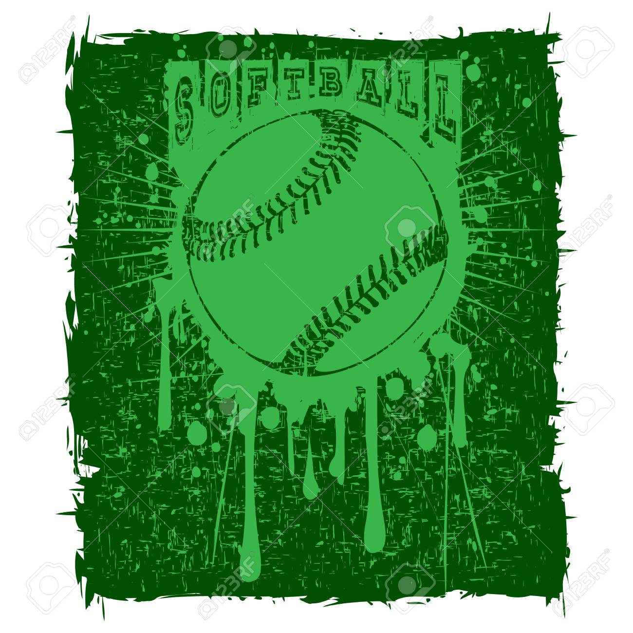 Abstract Vector Illustration Green Baseball Ball On Grunge Background. Inscription Softball. Design For Tattoo Or Print T-shirt. Клипарты, SVG, векторы, и Набор Иллюстраций Без Оплаты Отчислений. Image 92093170