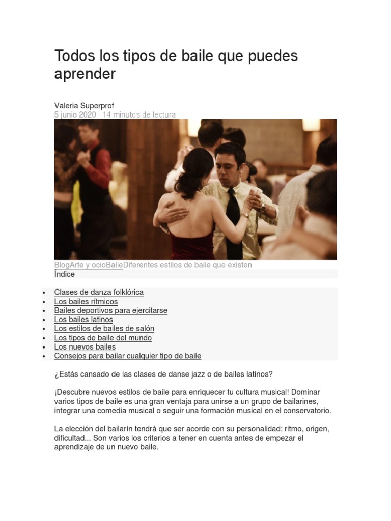 Todos Los Tipos de Baile | PDF | Bailes | Baile de salón