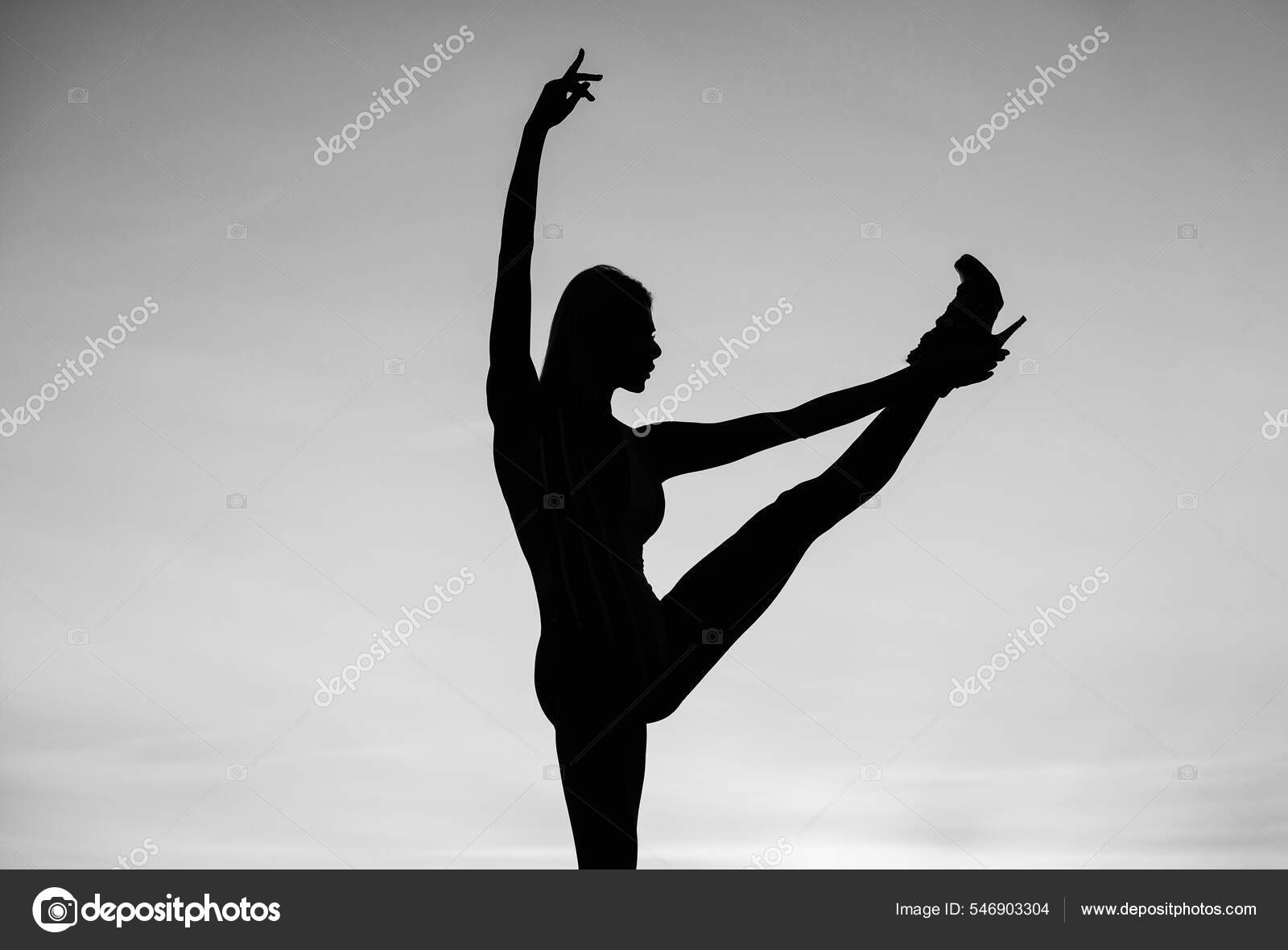 Posición de baile de ballet. Mujer bailando en la oscuridad. forma de figura oscura. chica bailando al atardecer: fotografía de stock © stetsik #546903304 | Depositphotos