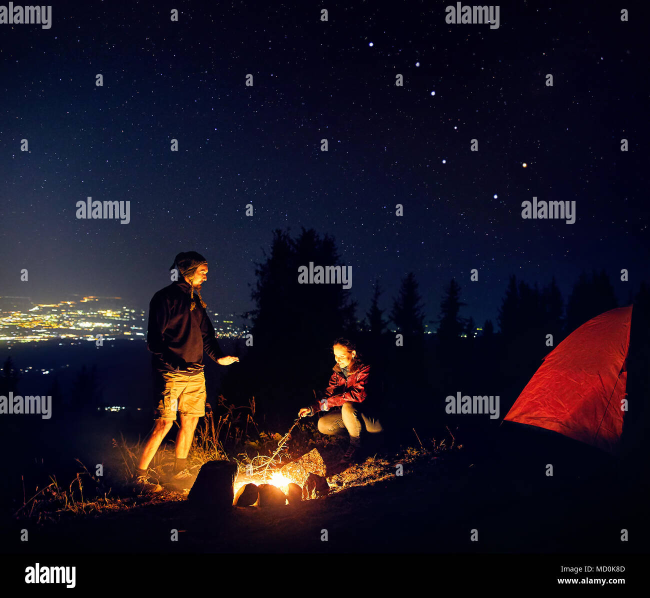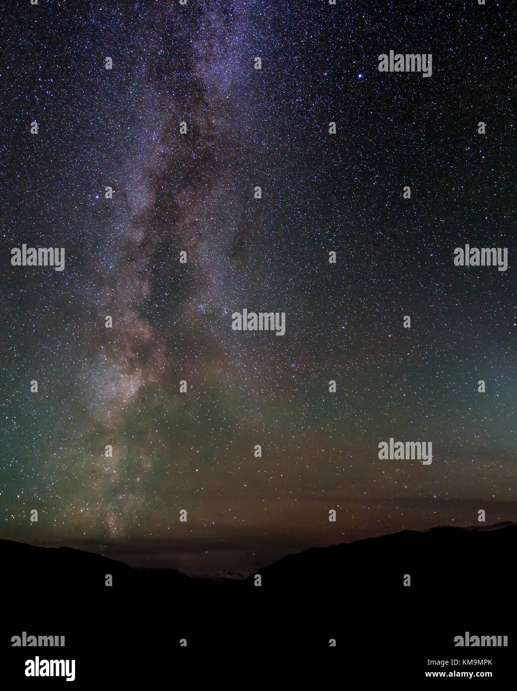 Paisaje nocturno con colorido y amarillo claro vía láctea ...