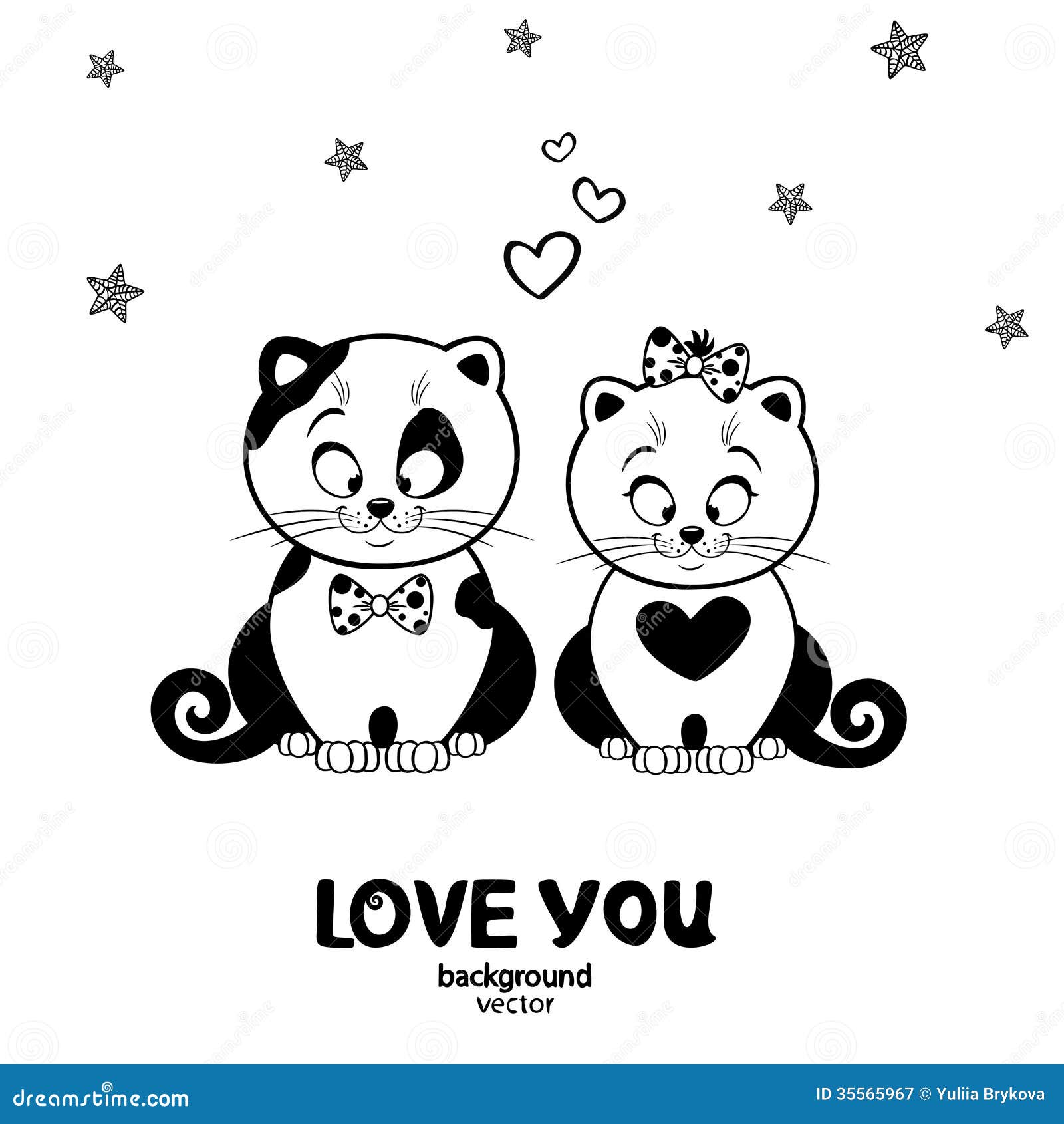 Tarjeta De Amor Con Gatos Lindos Ilustración del Vector - Ilustración de historieta, tarjeta: 208902466