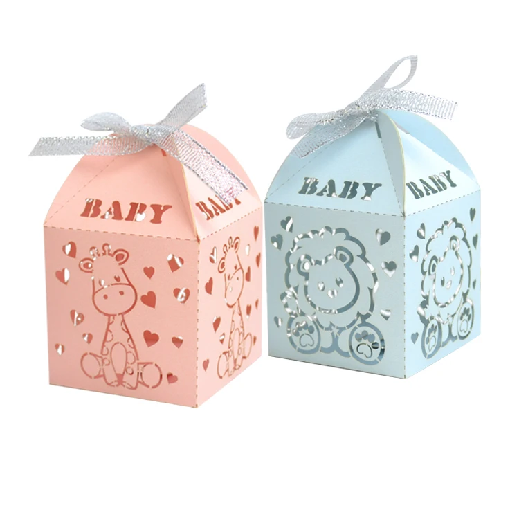 Recuerdos de fiesta de cumpleaños para Baby Shower, jirafa, León, Cajas de Regalo cortadas con láser para bebés - AliExpress