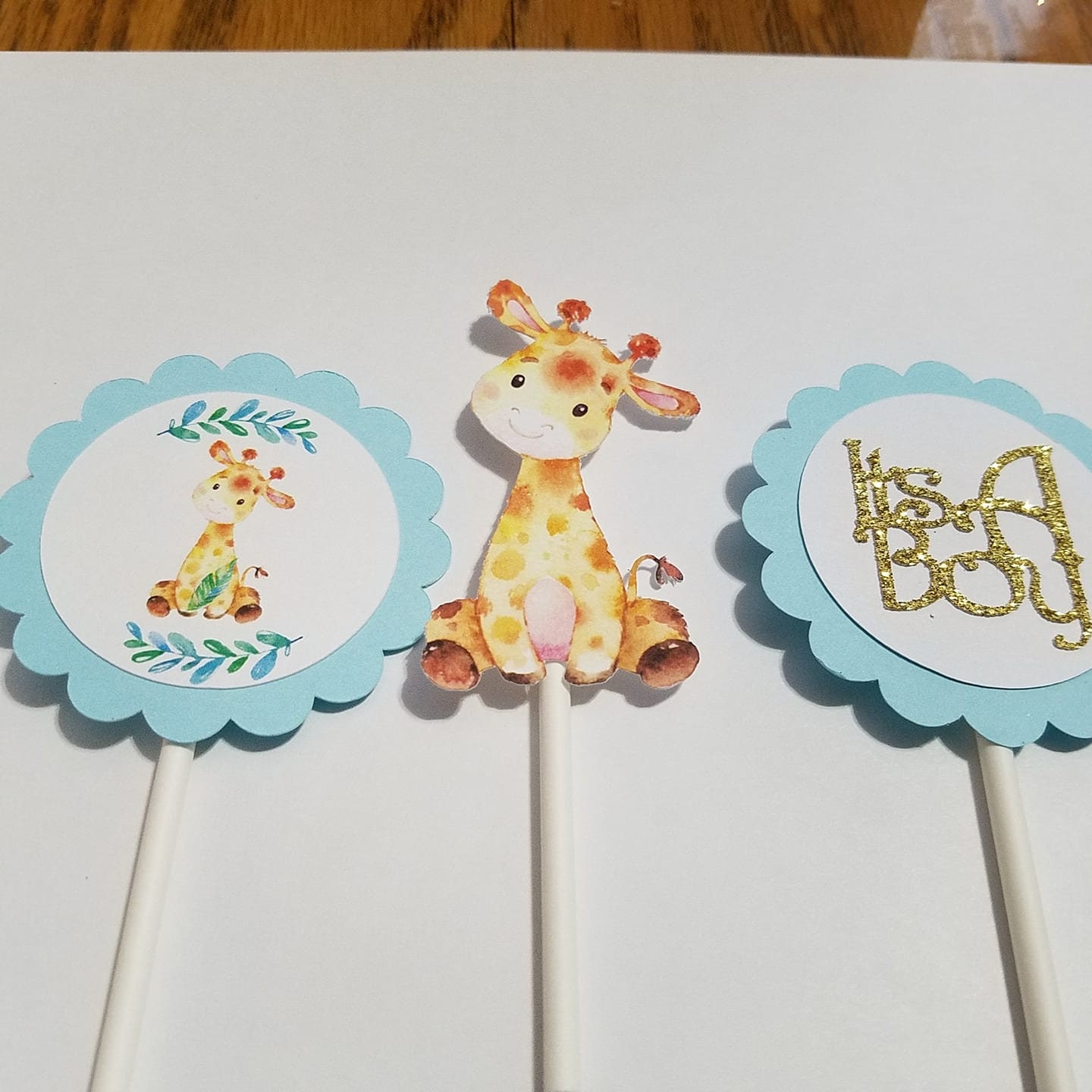 GIRAFFE BOY BLUE BABY SHOWER PRECUT EDIBLE CAKE TOPPER DECORATION | eBay