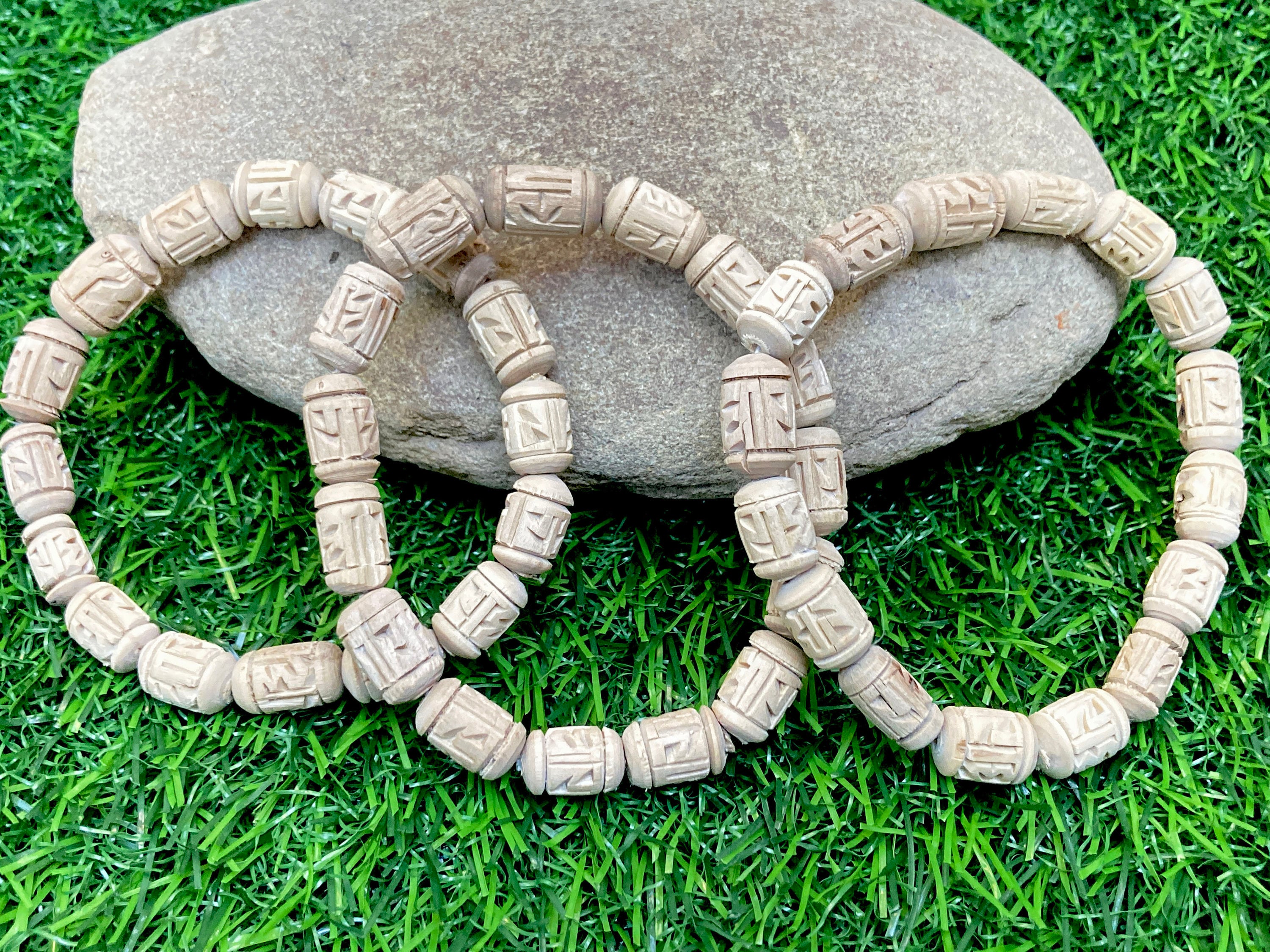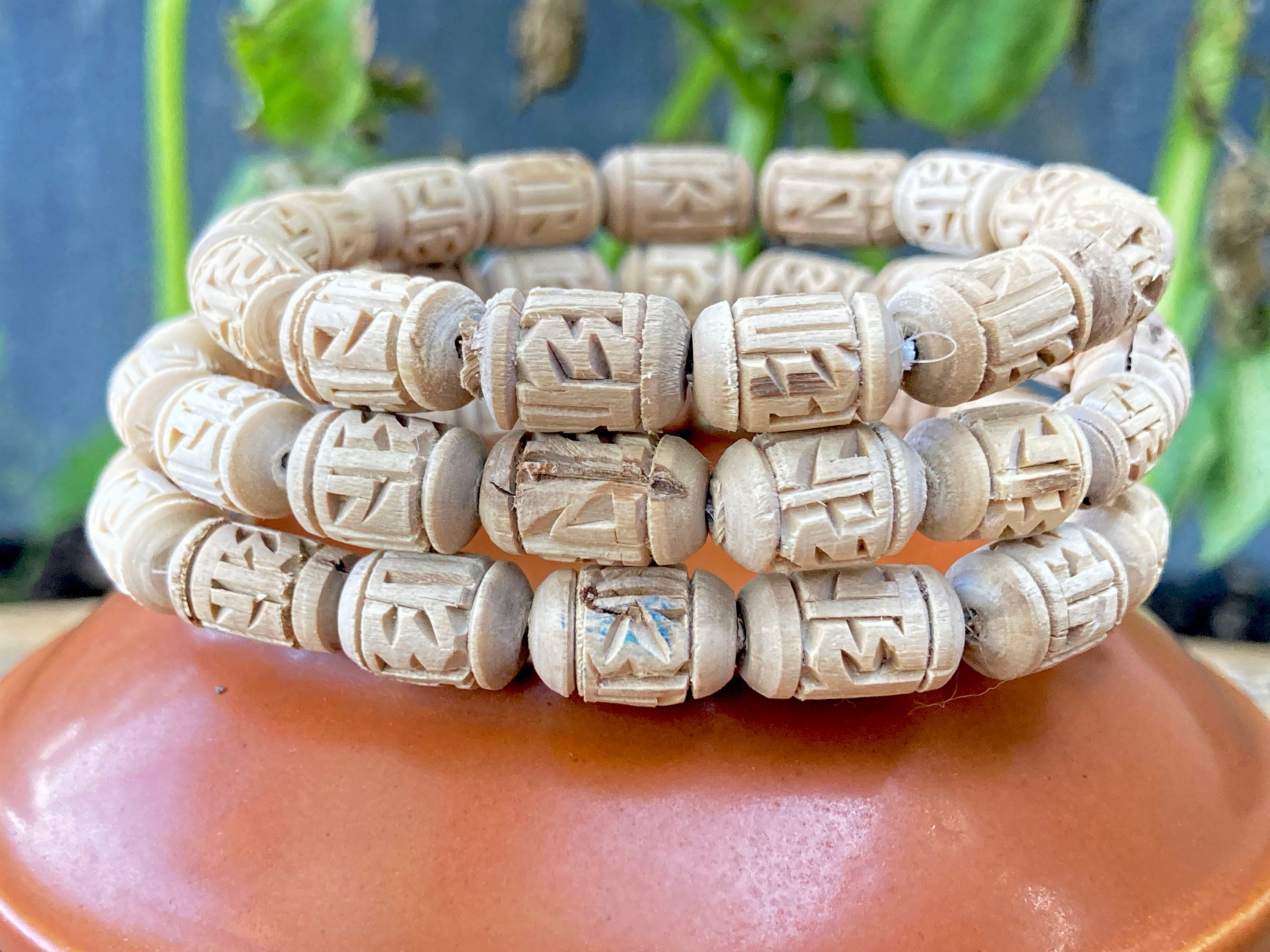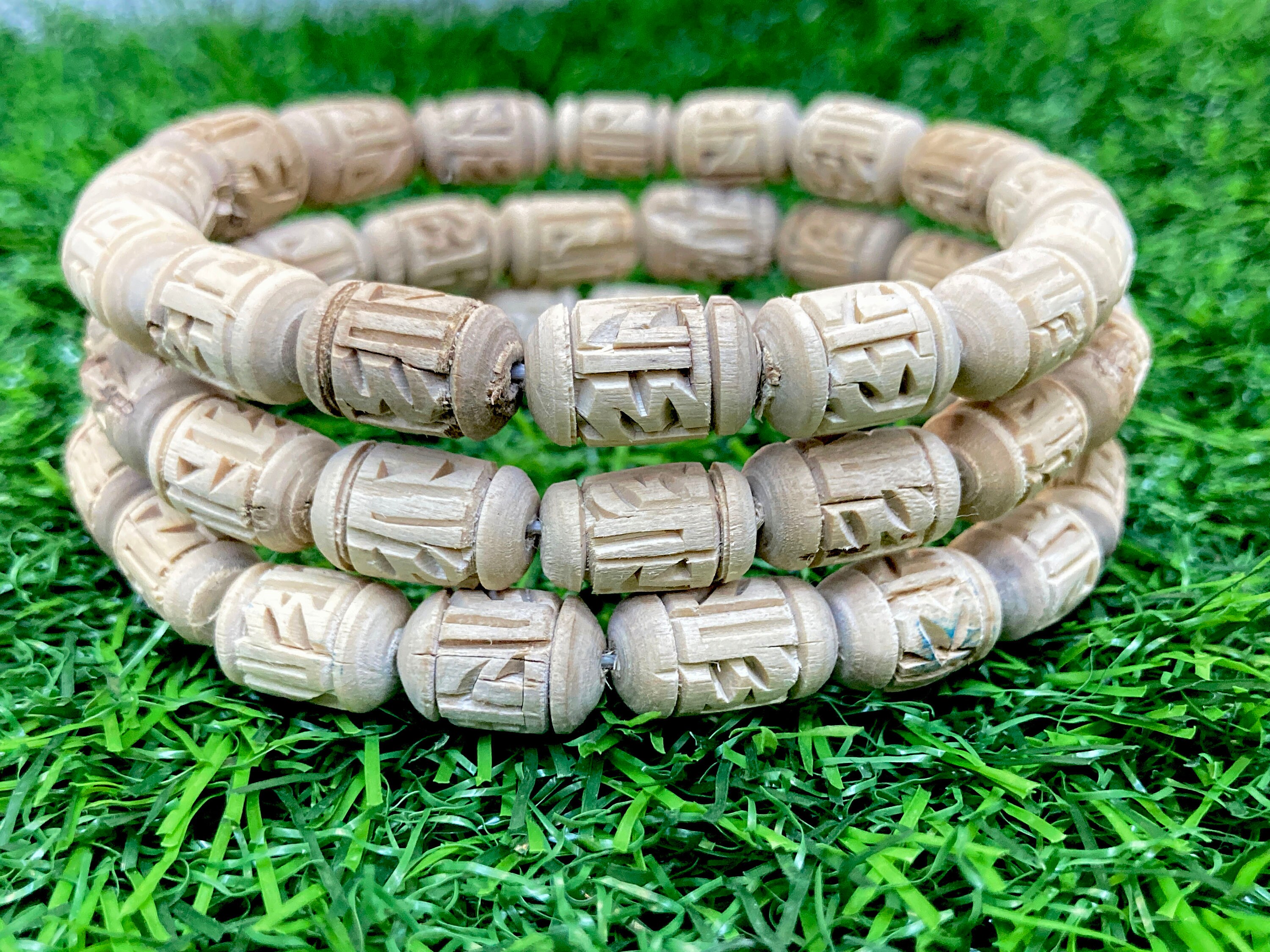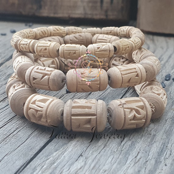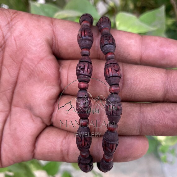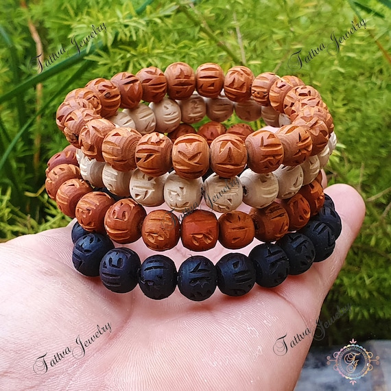 Pulsera Tulsi Grabado Radha, Pulsera Tulasi, Cuentas Tulsi Puras, Semillas De Albahaca Sagrada - Etsy España